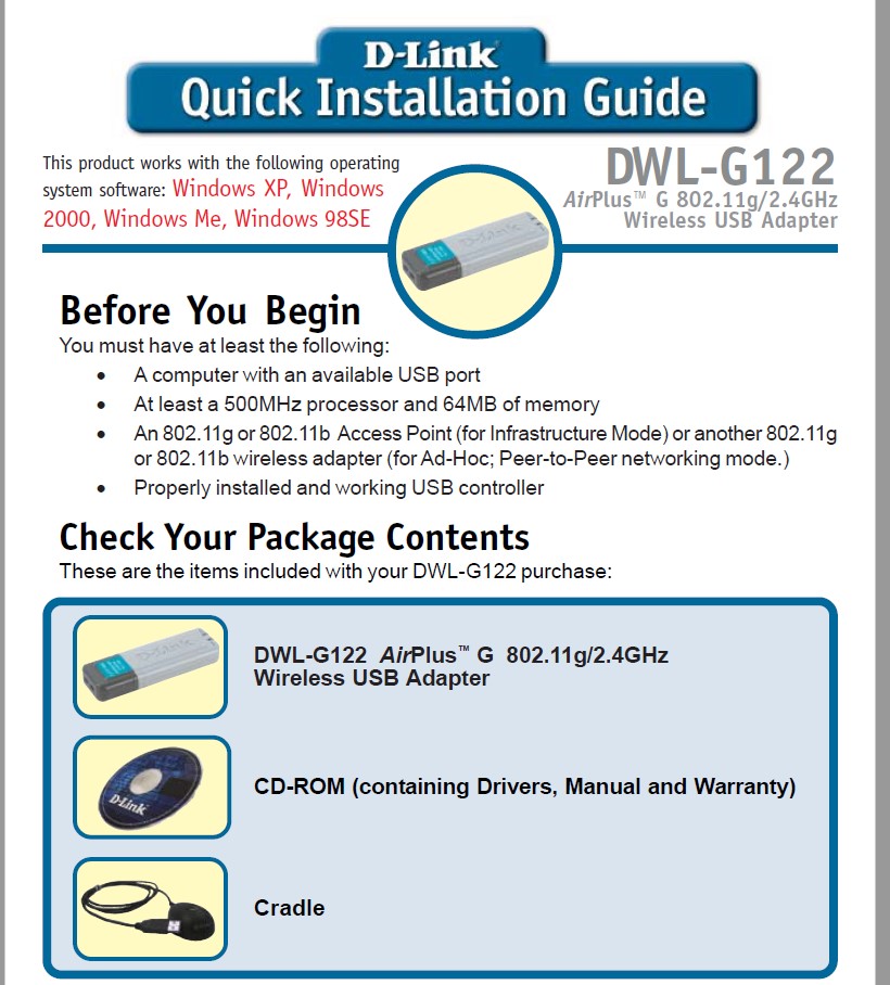 This is for use with D-Link DWL-G122 USB Wireless adapters in older systems!