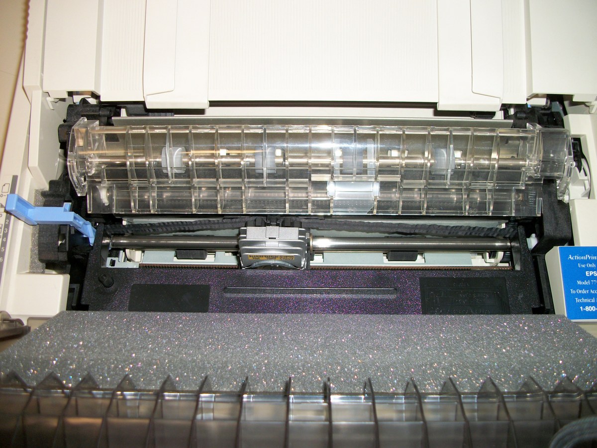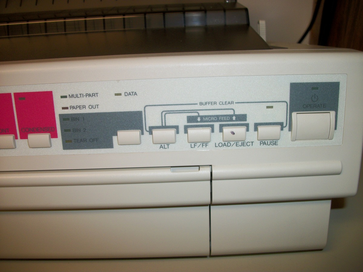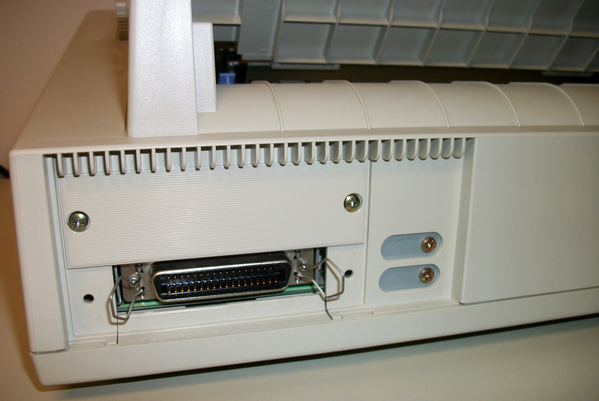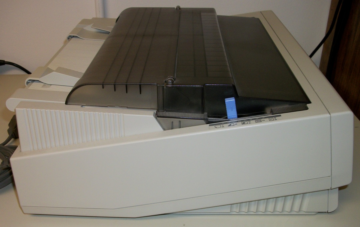 Up for sale is an old Epson ActionPrinter 5000+ dot matrix printer. We powered it on and were successfully able to print a test page – see pictures, we also connected it to an old Windows XP computer and we were able to get it to print a test page. The test pages are in good condition considering they were printed with the ribbon installed in the printer from about 20 years ago! This comes with the original user’s guide, a parallel cable (about 9′ long), and some old Epson accessory brochures – see pictures. If you would like to save on the shipping, you’re welcome to schedule an appointment and stop by to pick it up.