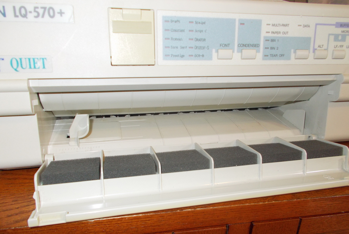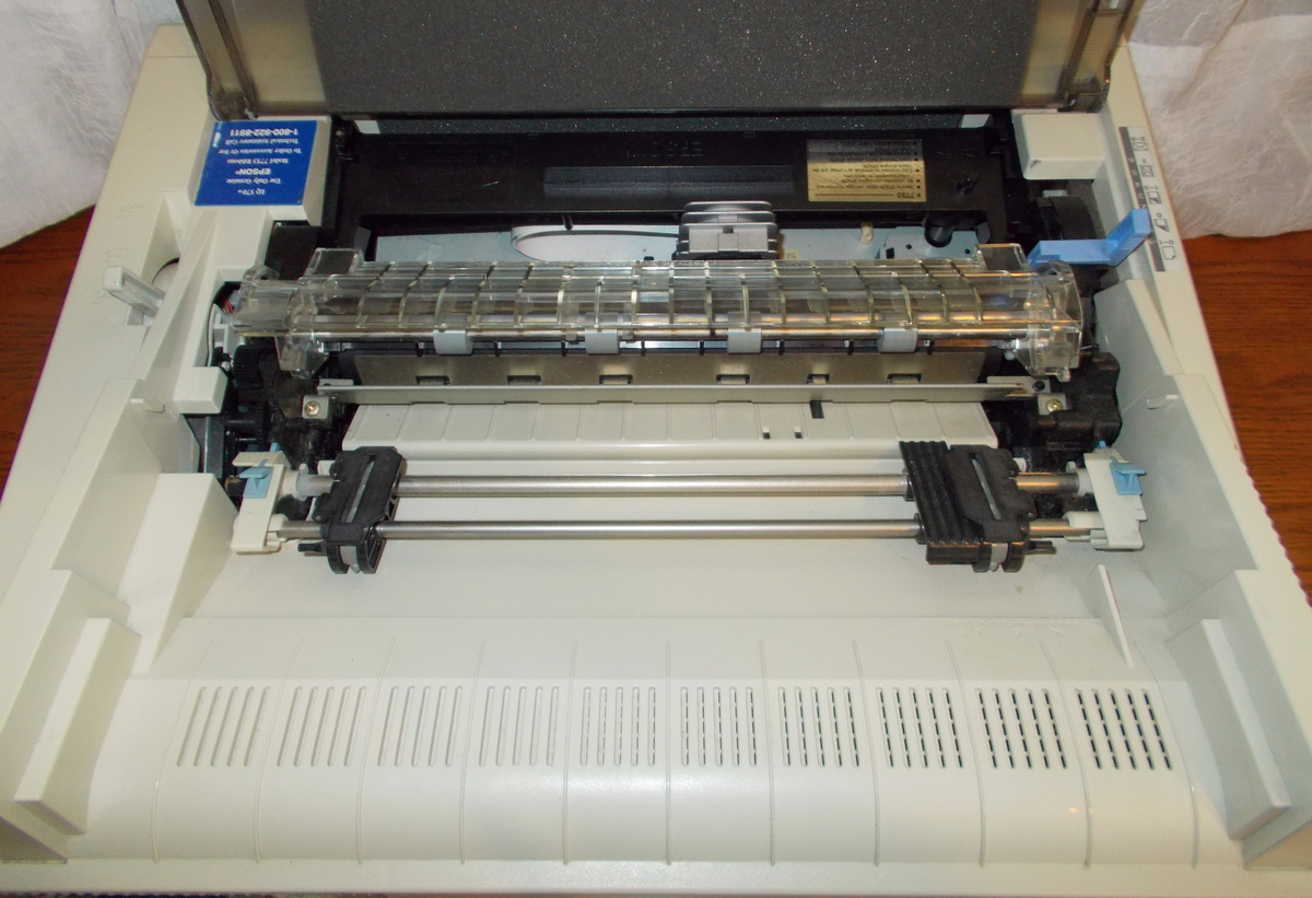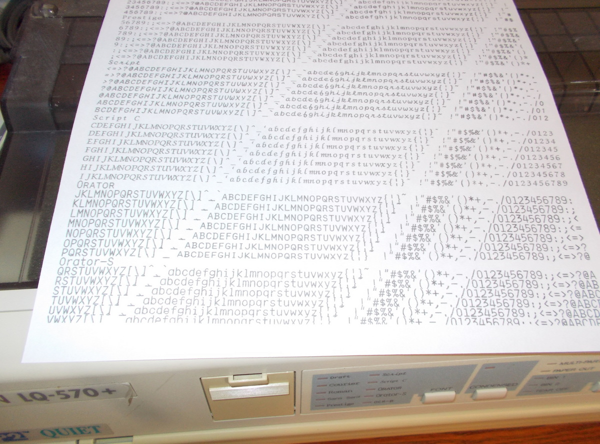 Up for sale is an old Epson LQ-570+ dot matrix printer. We powered it on and were successfully able to print a test page – see pictures, we also connected it to an old Windows XP computer and we were able to get it to print a test page. The test pages are in good condition since we installed a new, old stock ribbon into the printer to try it out. This comes with one extra ribbon in the original box – dated 2001 with ‘Linda’ written on it. If you would like to save on the shipping, you’re welcome to schedule an appointment and stop by to pick it up.