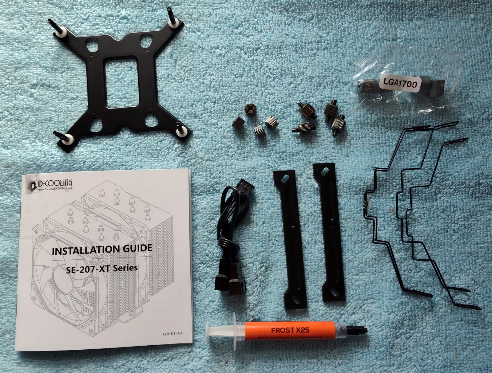 Up for sale are the parts for using an ID-Cooling SE-207-XT Slim CPU Cooler with LGA1700 / LGA21XX Intel processors. We used the cooler for an AMD system and have these parts left over – hope someone out there can put ’em to use! These are for attaching the cooler to an Intel socket LGA1700 / LGA21XX. These parts are in unused condition and are left over from a system build. This lot does not have all of the pieces for LGA1200 / 115X as the LGA1200 standoffs were also used for mounting it on an AMD system.