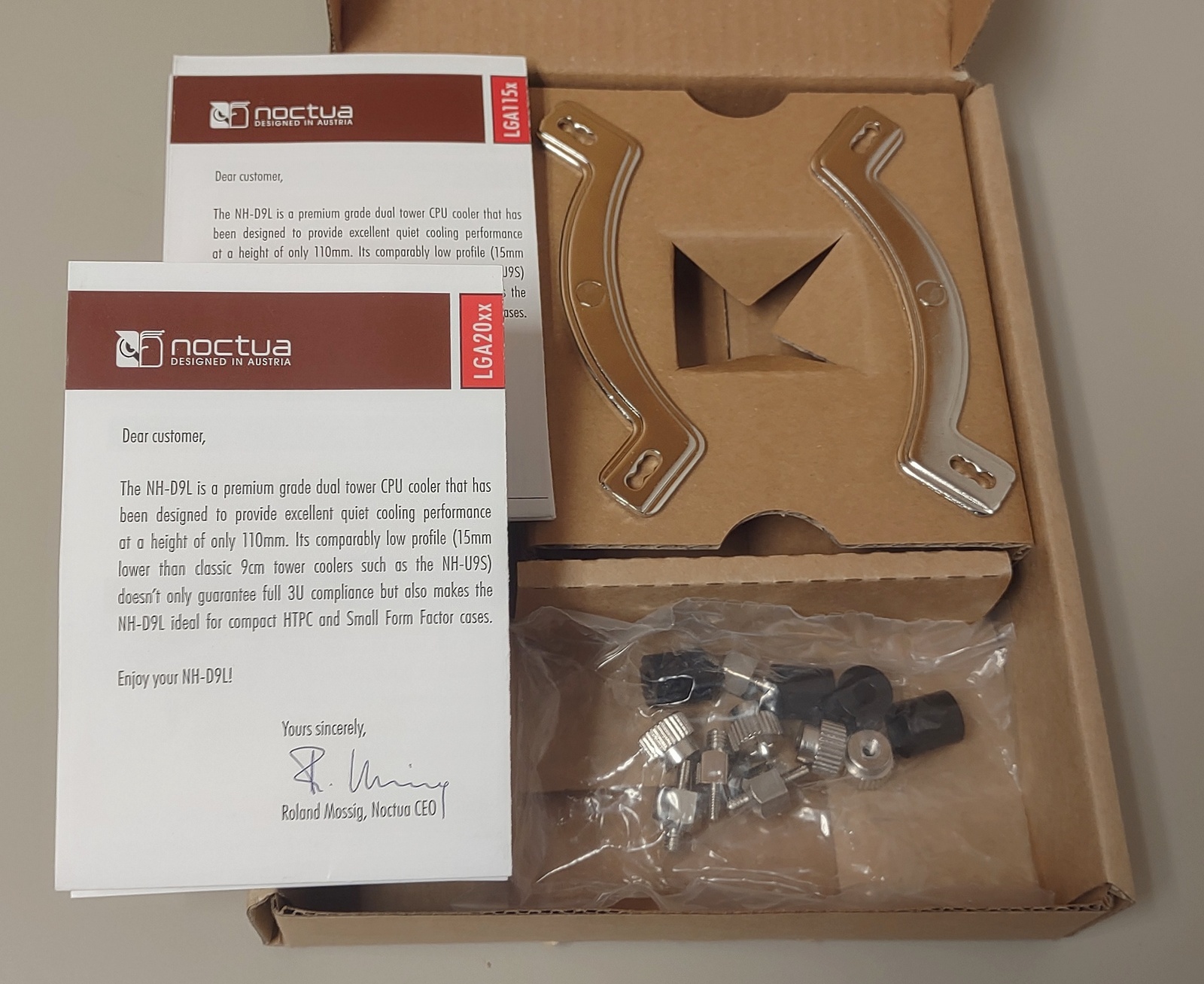 Up for sale are the parts for using a Noctua NH-D9L CPU Cooler with an Intel processor. We used the cooler for an AMD system and have these parts left over – hope someone out there can put ’em to use! These are for attaching the cooler to an Intel socket LGA115X / LGA20XX. These are in unused condition and are left over from a system build.