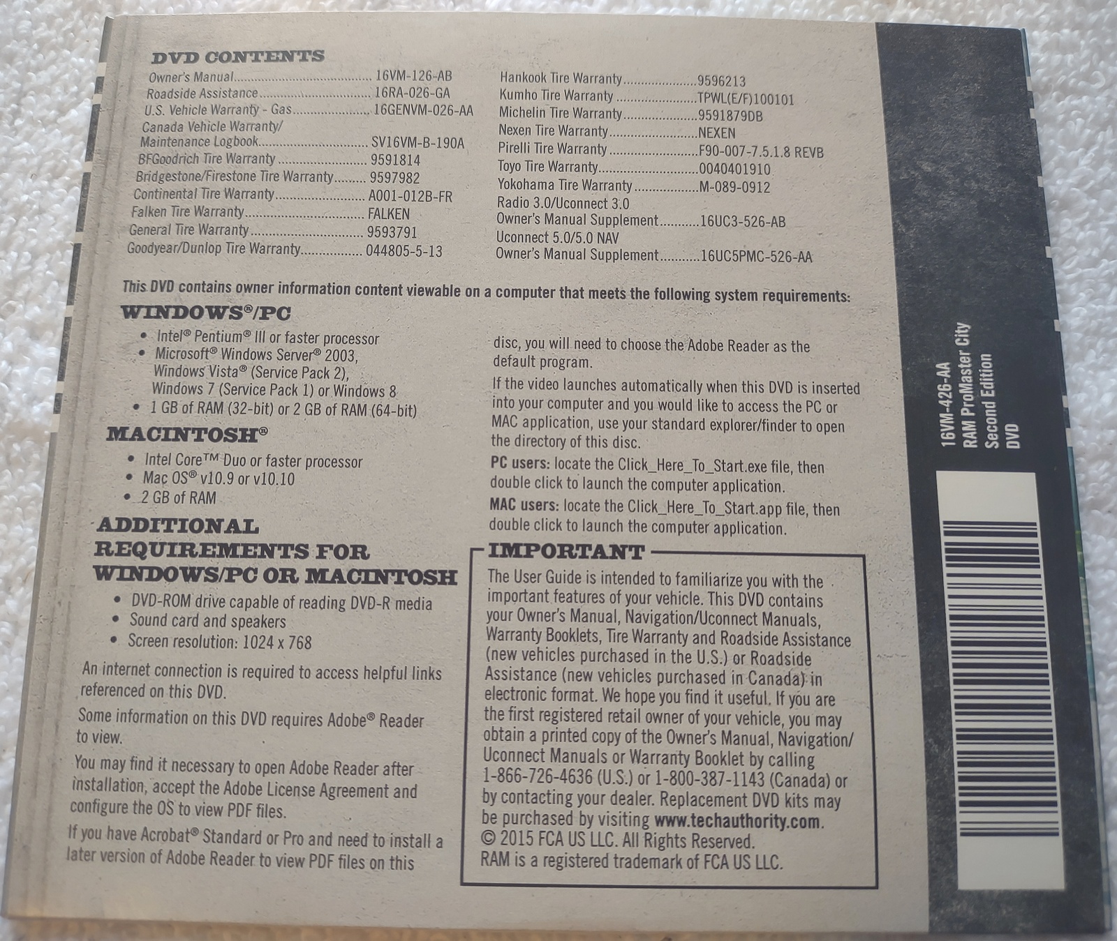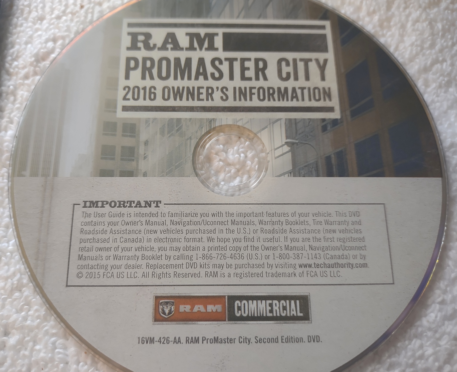 16VM-426-AA RAM ProMaster City. Second Edition. DVD This is from 2015 and is for 2016 model year vehicles.