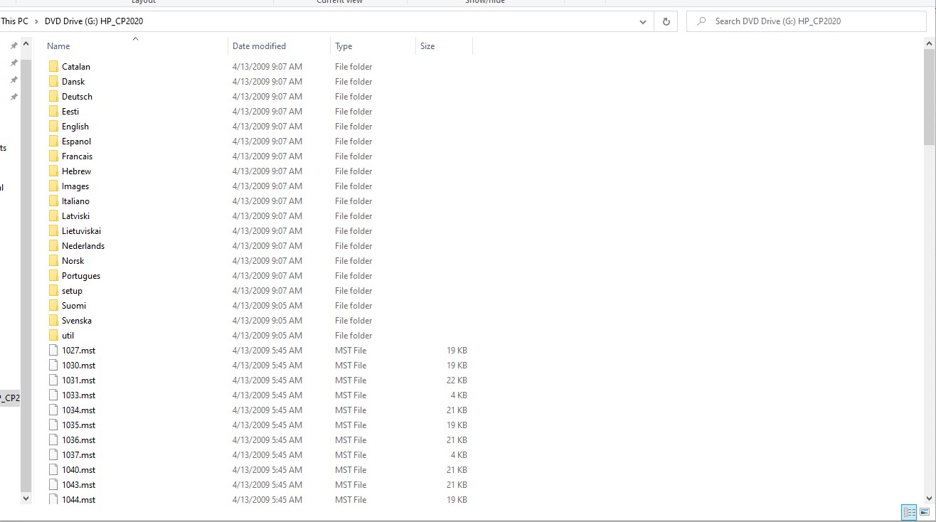 This includes documentation and driver software for HP CP2020 Series Color Laser Printers from 2009. DO NOT EXPECT THIS TO WORK WITH A MODERN OPERATING SYSTEM! We tried to run the ‘Setup.exe’ file in Windows 10 and it warned us that it would likely not work – see the third picture with the error. We did not try to install the software.