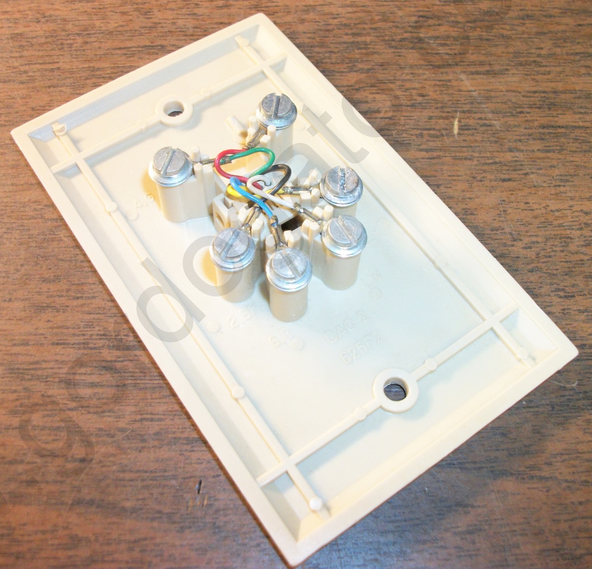 Up for sale is a used 6-Conductor screw terminal faceplate/jack in good condition – Ivory w/ textured front.