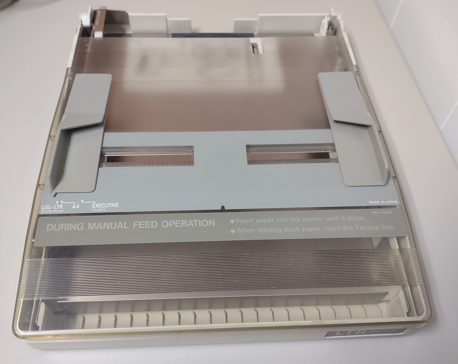 Up for sale is an old paper tray for use with HP LaserJet Series II parallel port laser printers. This was left over from an old printer we used years ago and now it’s clean up time and we’re offering it on the internet in hopes that someone out there can put it use, or add it to their collection!