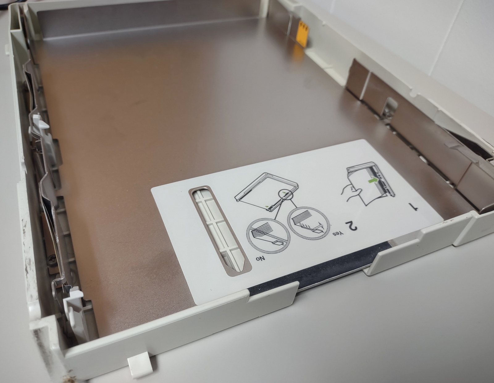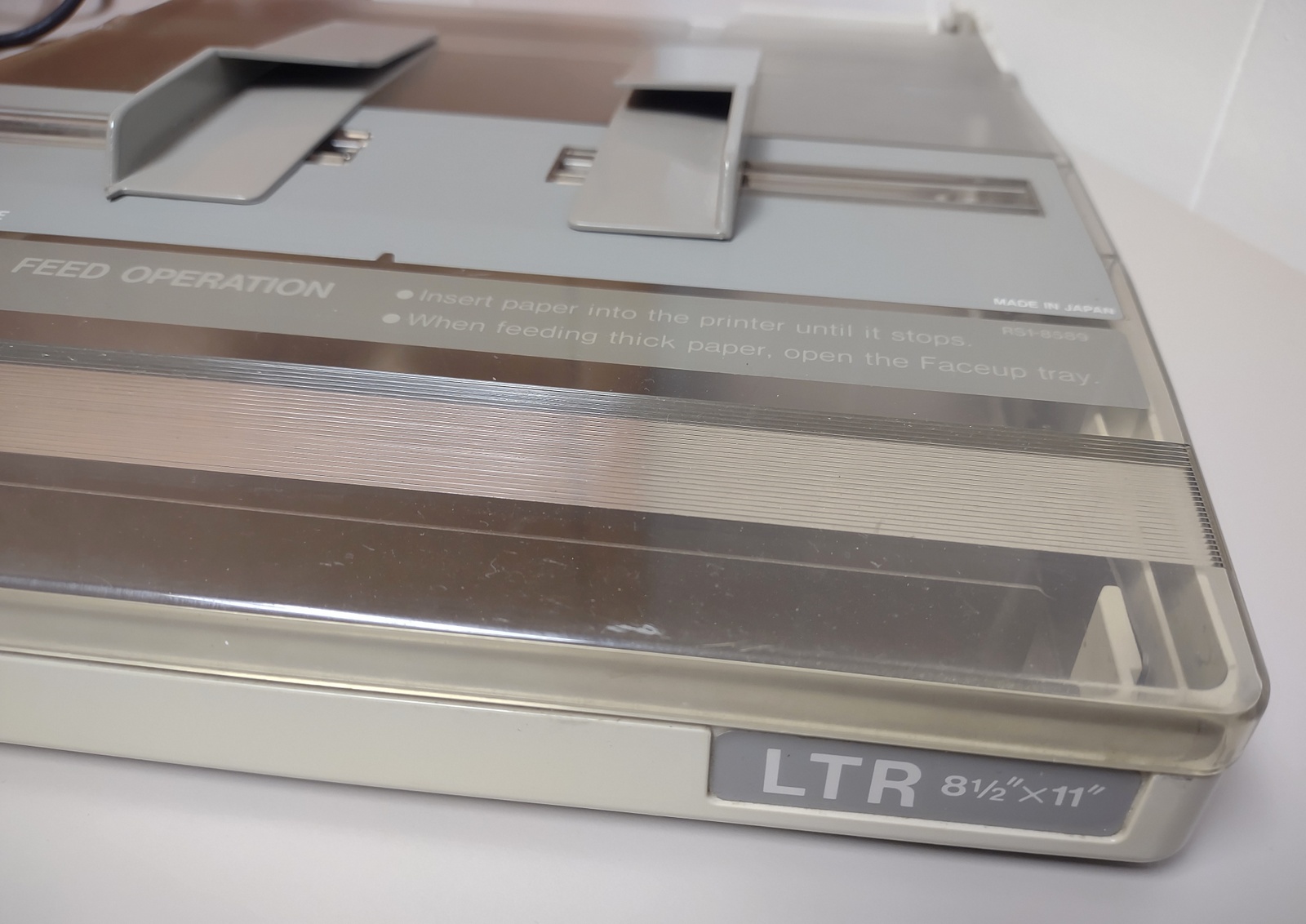 This tray is in pretty good shape for decades old – it has some yellowing of the plastic and some scratches in the manual feed (plastic cover) – LOOK AT THE PICTURES!
