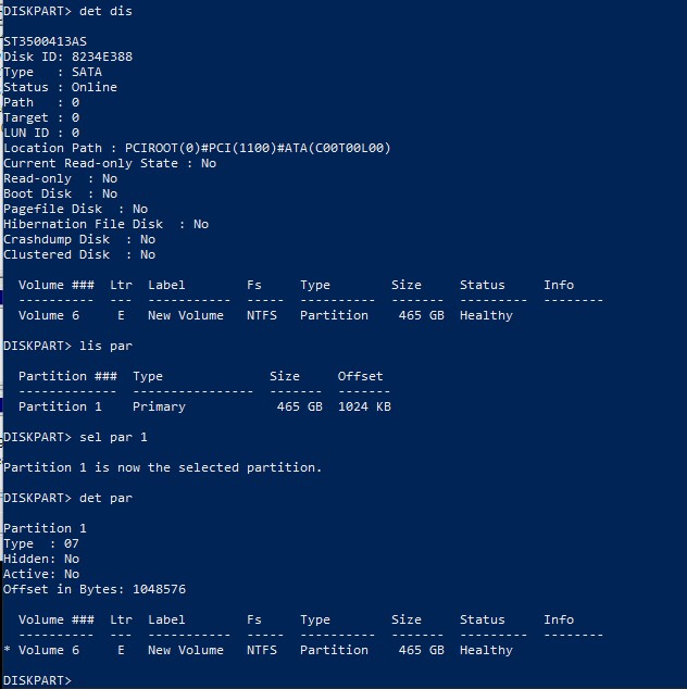 This drive has been wiped, initialized, partitioned with one partition (MBR) and one volume formatted with NTFS.