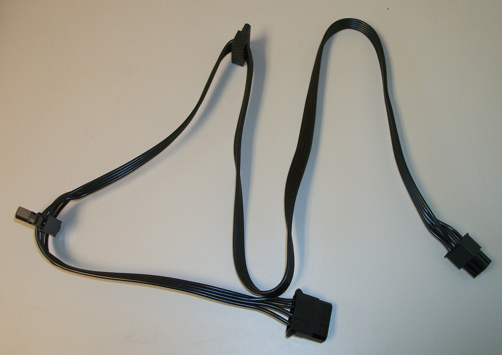 Up for sale is an original cable for use with a Raidmax Vortex RX-635AP-V Power Supply. It is left over from a build which did not require this cable. It has 2 Molex power connector ends and 1 SATA power connector end. It measures about 32″ long overall with about 20″ between the plug which connects to the power supply and the SATA plug, with about 6″ to the first Molex plug in the middle and another 6″ to the Molex plug on the end. This may be compatible with other power supplies, but please check with RaidMax for compatibility with your power supply BEFORE you purchase this item. Use of this cable with any other power supply may result in damage to your equipment!