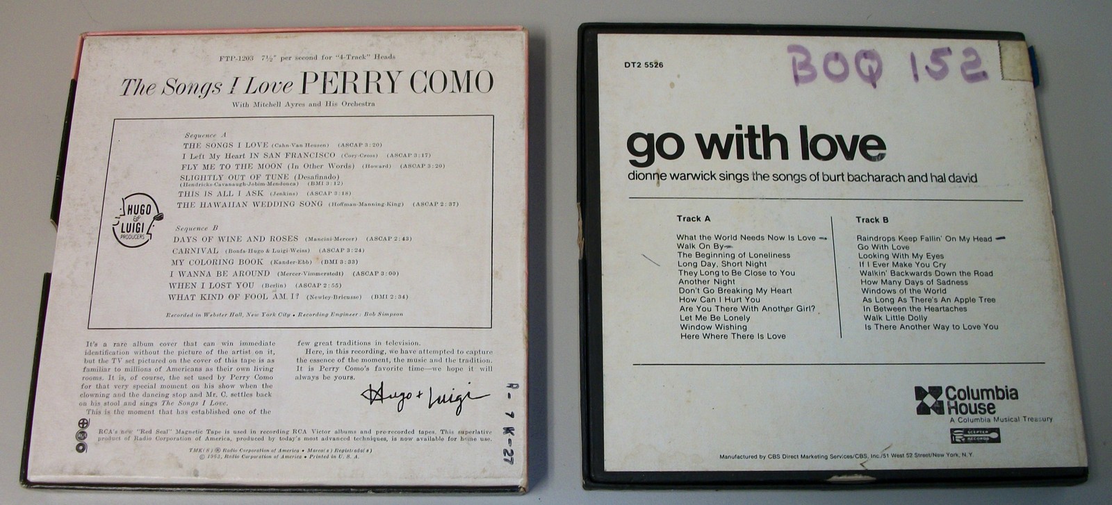 Up for sale is a lot of 2 4-track tapes: The Songs I Love by Perry Como and Go With Love by Dionne Warwick (Dionne Warwick sings the songs of Burt Bacharach) This is in used condition – please examine the pictures BEFORE you make your decision to purchase this item.