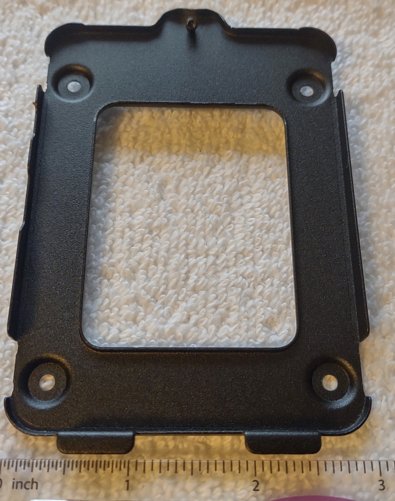 Up for sale is an internal bracket for a 2.5″ hard drive or solid state drive from a Corsair iCUE 4000D Airflow computer case. It holds one 2.5″ drive. You will need to provide your own fasteners to mount your drive on the bracket. Hope someone out there on the internet can put it to use! It also might be useful in your own custom creation – it measures about 4.5″ long (tall) x 3″ wide x 1/4″ thick and is black steel.