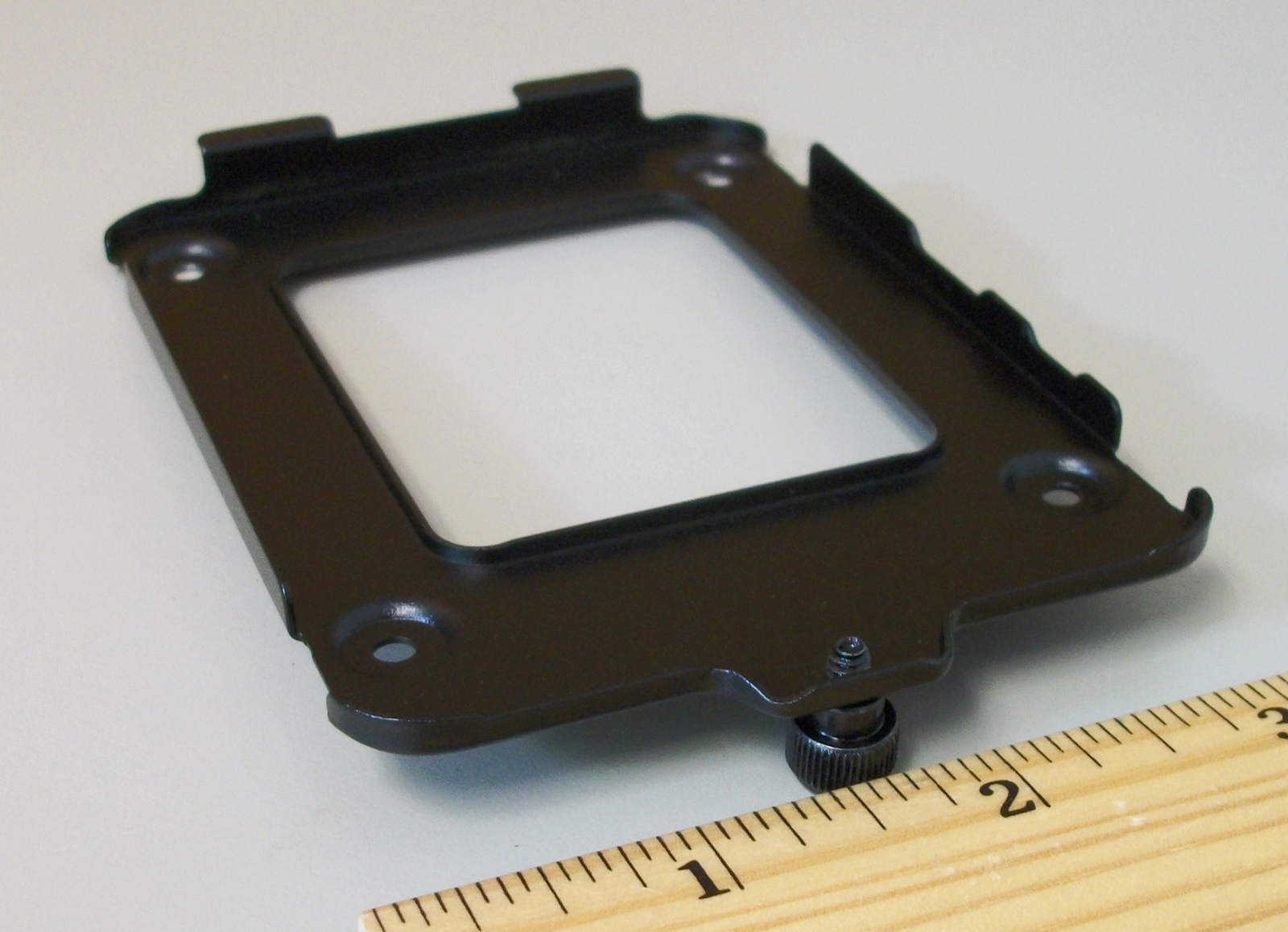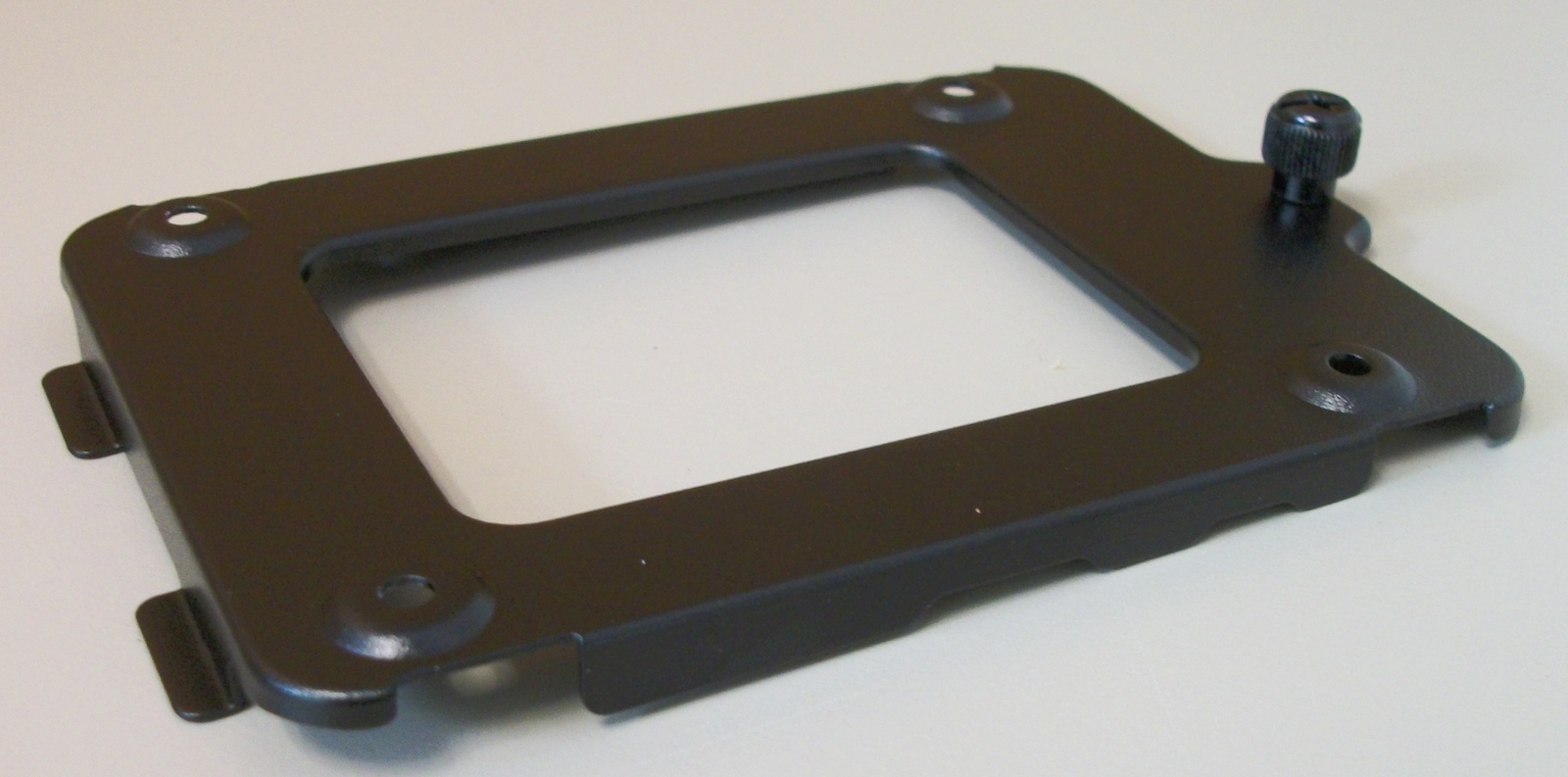 Up for sale is an internal bracket for 2.5″ hard drives or solid state drives from a Corsair Obsidian 500D computer case. It holds one 2.5″ drive. You will need to provide your own fasteners to mount your drive on the bracket This bracket is in unused condition. Hope someone out there on the internet can put it to use! It also might be useful in your own custom creation – it measures about 4.5″ long (tall) x 3″ wide x 1/4″ thick (1/2 inch counting the thumb screw) and is black.