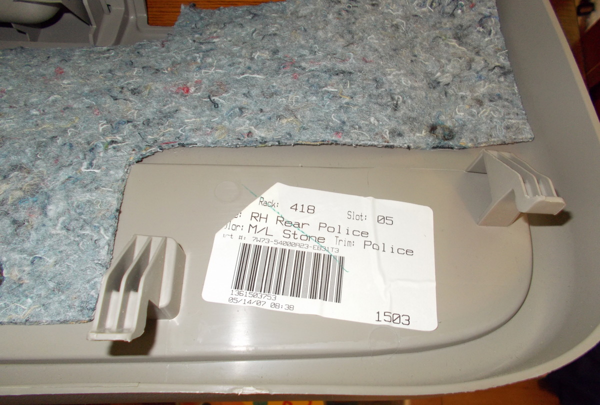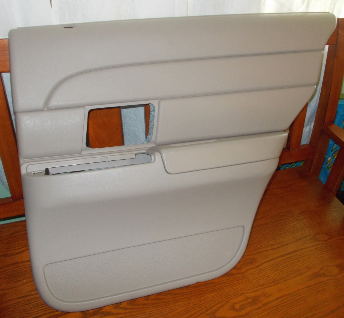 This is a rear passenger side door panel from a 2007 Ford Crown Victoria Police Interceptor. This was pulled out when the car was made into a K-9 vehicle years ago and is in excellent condition excepting some scuff marks – see pictures. It has a tear on the sound dampening material on the backside of the panel – probably from when it was removed – see pictures! It has been in storage for years and we had two of these available – you are purchasing the one in the pictures. It may fit other year vehicles, but we’re not for sure – so please check with Ford for compatibility with your vehicle BEFORE you purchase this item. Even though this item doesn’t weigh a lot, shipping is expensive because it is bulky. If you would like to save on the shipping, you may make an appointment and stop by to pick it up.