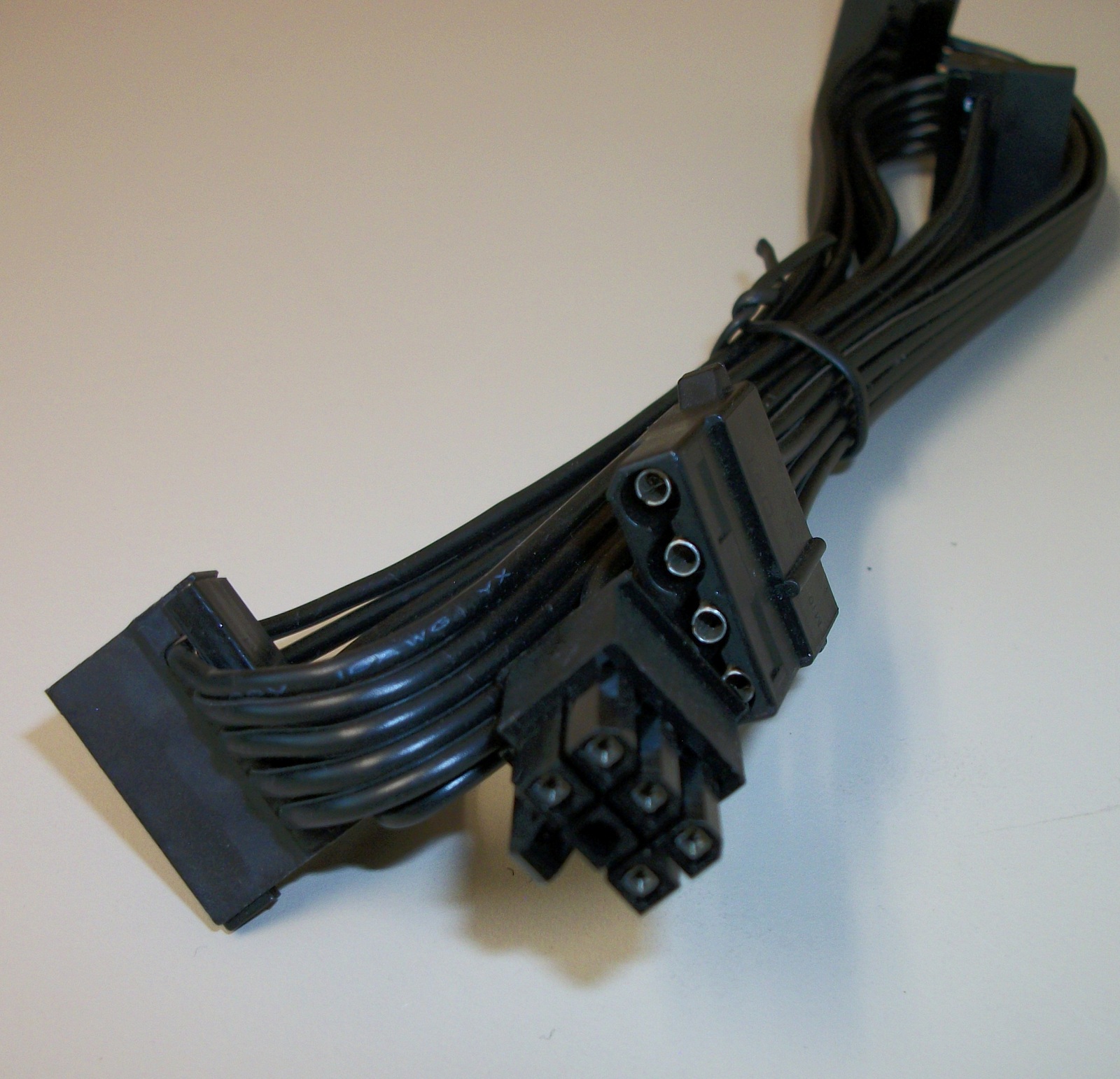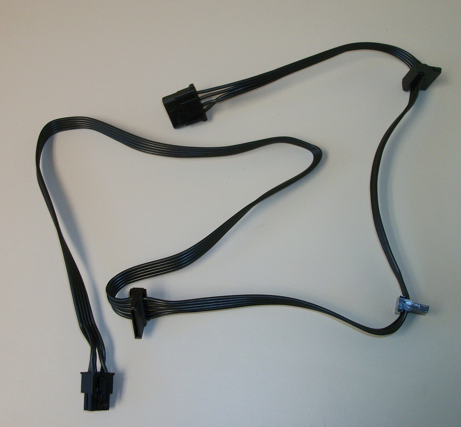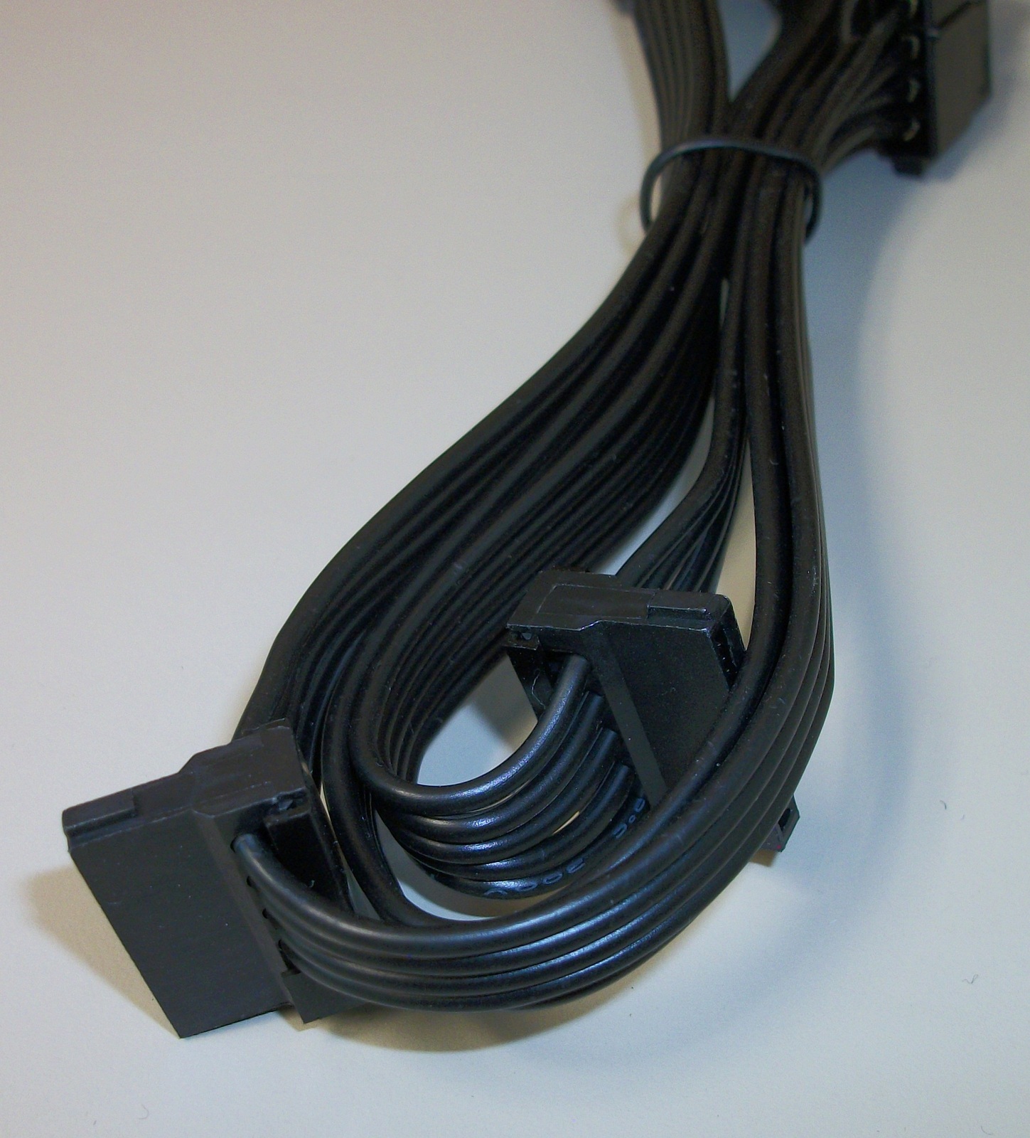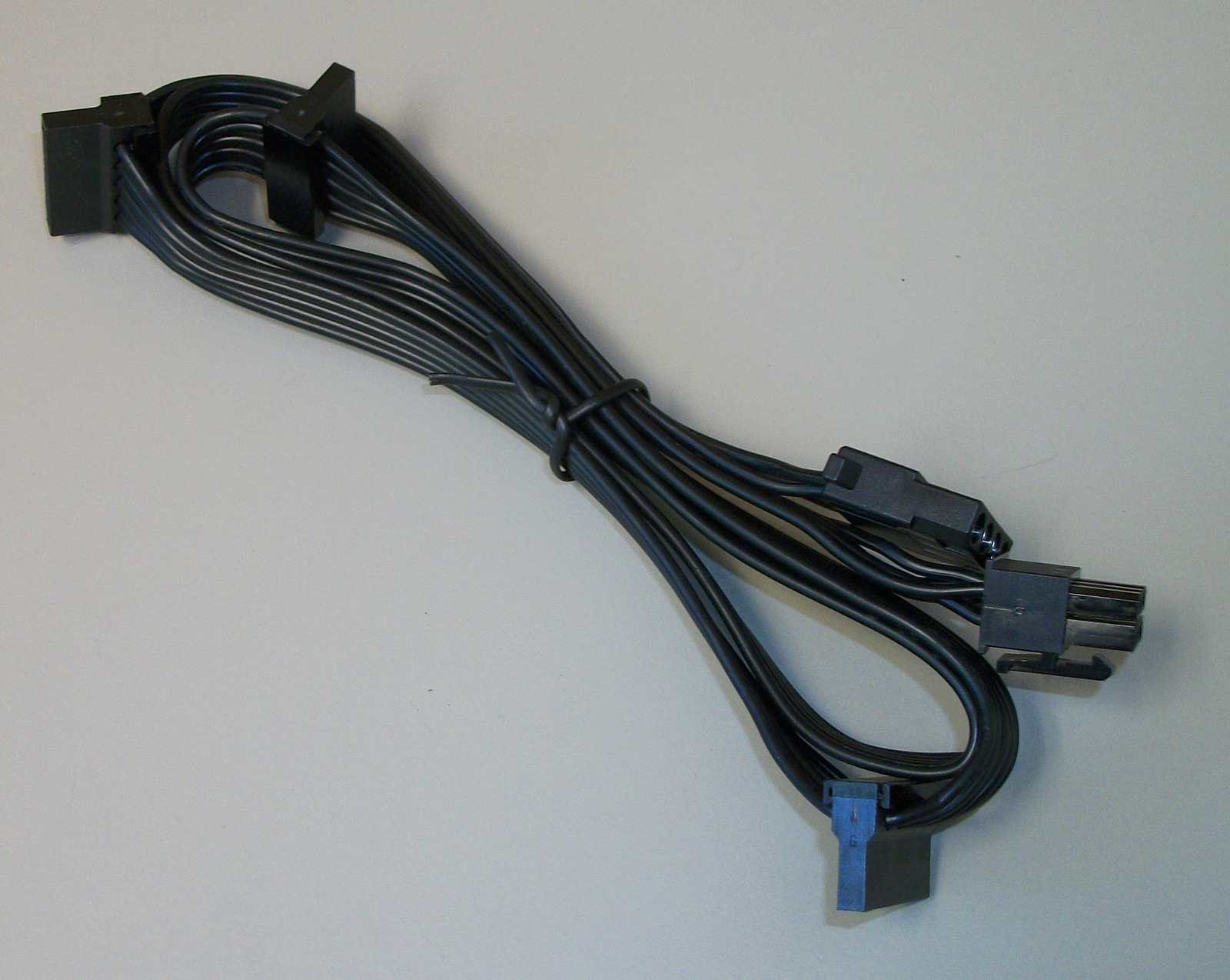 Up for sale is an original cable for use with a Rosewill Capstone 850M Power Supply. It is left over from a build which did not require this cable. It has 3 SATA power connector ends for use with SATA hard drives / optical drives / et cetera AND one Molex type plug for other peripherals. It measures about 39″ long overall with about 21″ between the plug which connects to the power supply and the first SATA power plug, another 6″ to the next SATA power plug and another 6″ to the last SATA power plug, then another 6″ to the Molex plug on the end. This may be compatible with other power supplies, but please check with Rosewill for compatibility with your power supply BEFORE you purchase this item.
