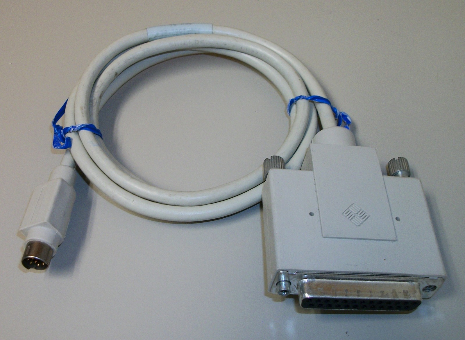 - 8-pin Round DIN type plug on the other end – labeled A/B