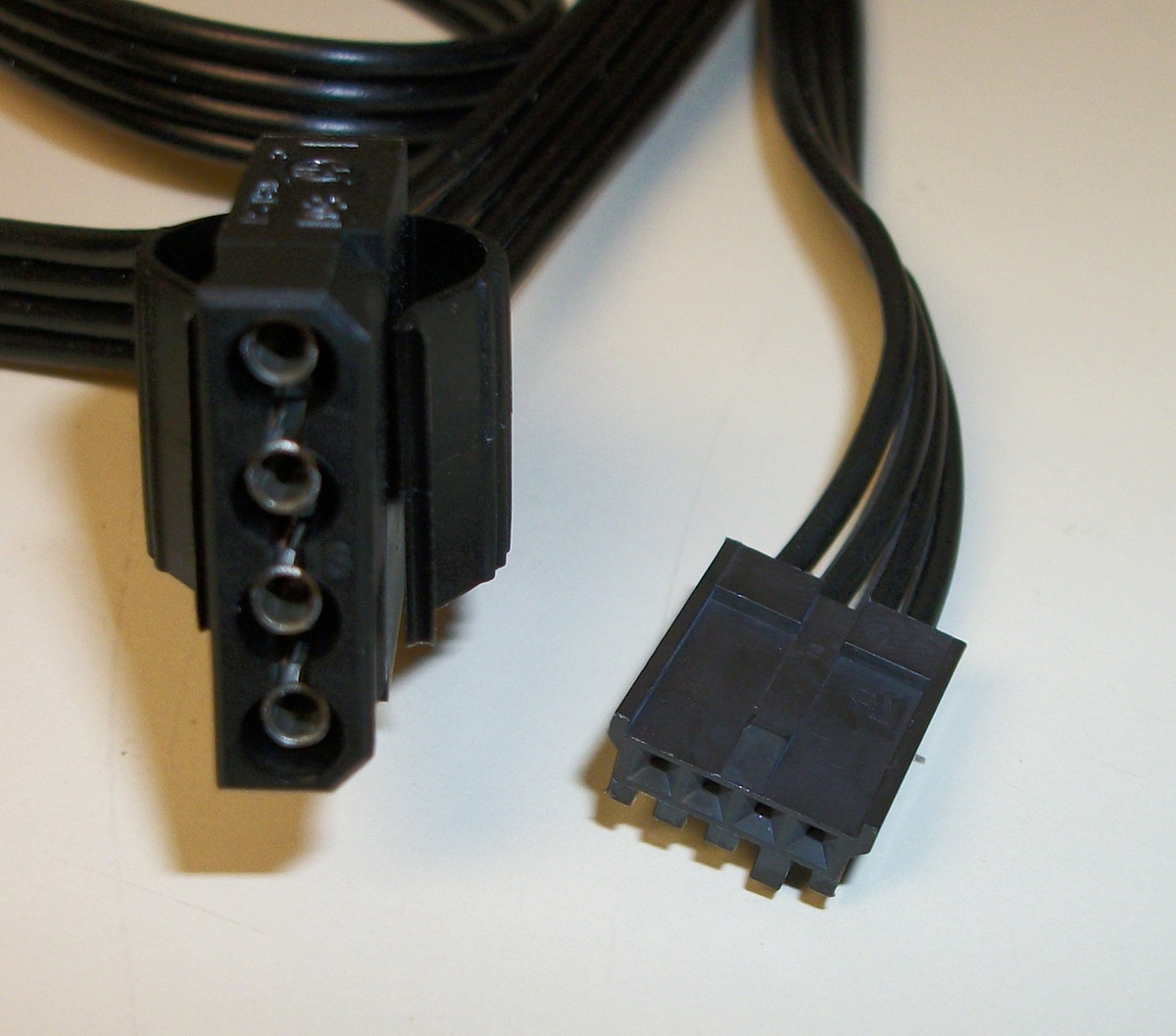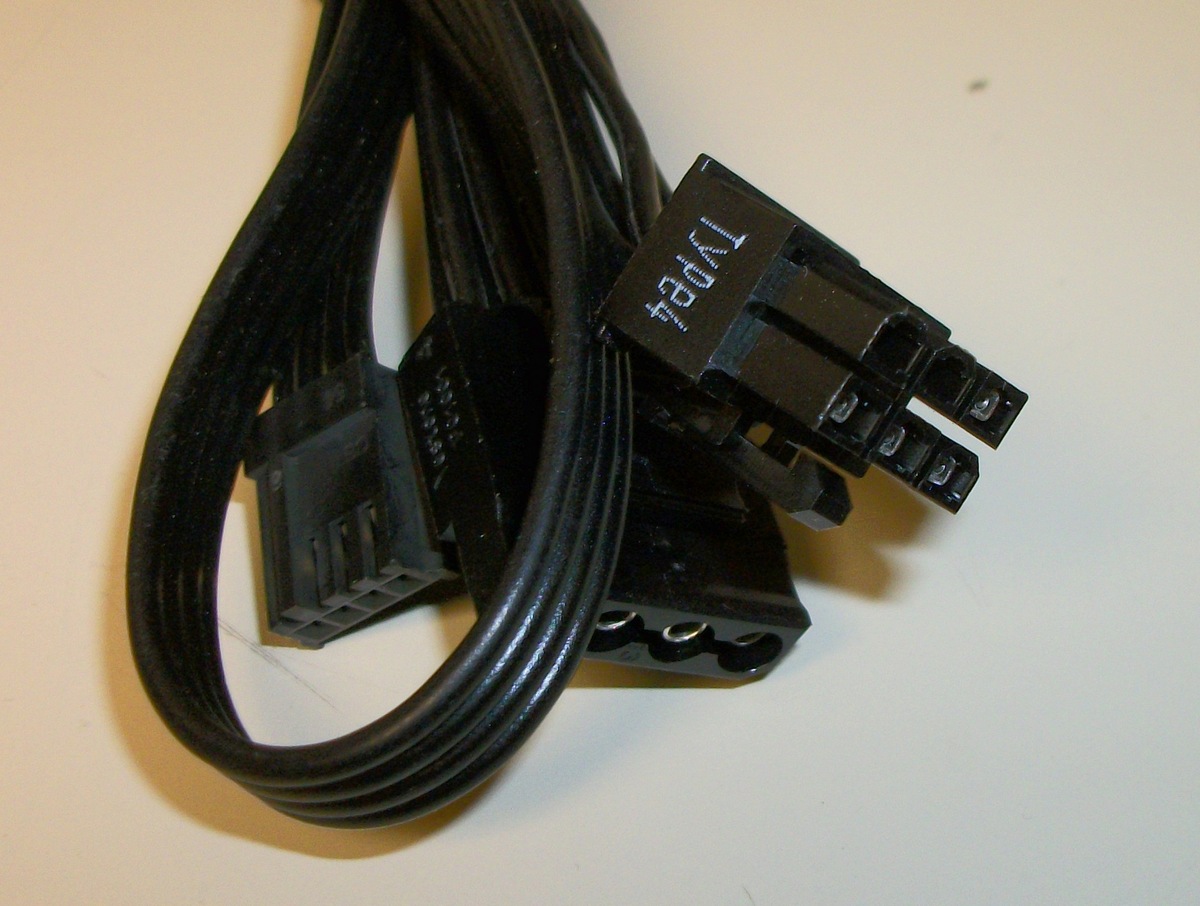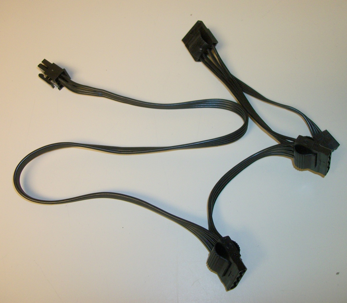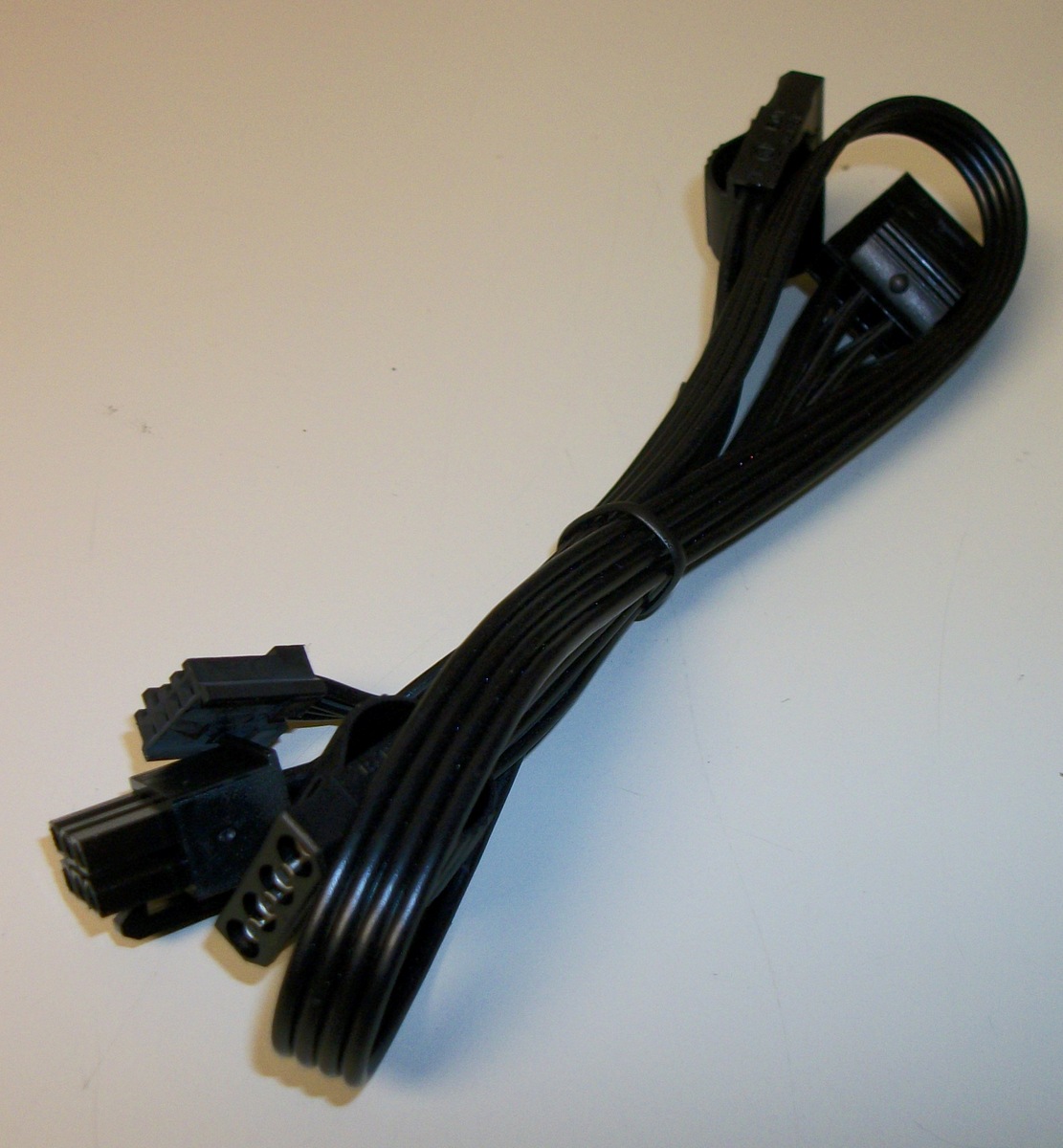 This is an original cable for use with a Corsair CX 550M. It has 3 Molex power connector ends and 1 floppy drive power connector plug. The measurements are about 29″ long overall with about 17″ between the plug which connects to the power supply and the first Molex plug, with about 4″ to the next molex plug, another 4″ to the third molex plug, and about another 4″ to the floppy type power plug on the end. This may be compatible with other power supplies, but please check with your manufacturer for compatibility BEFORE you purchase this item.