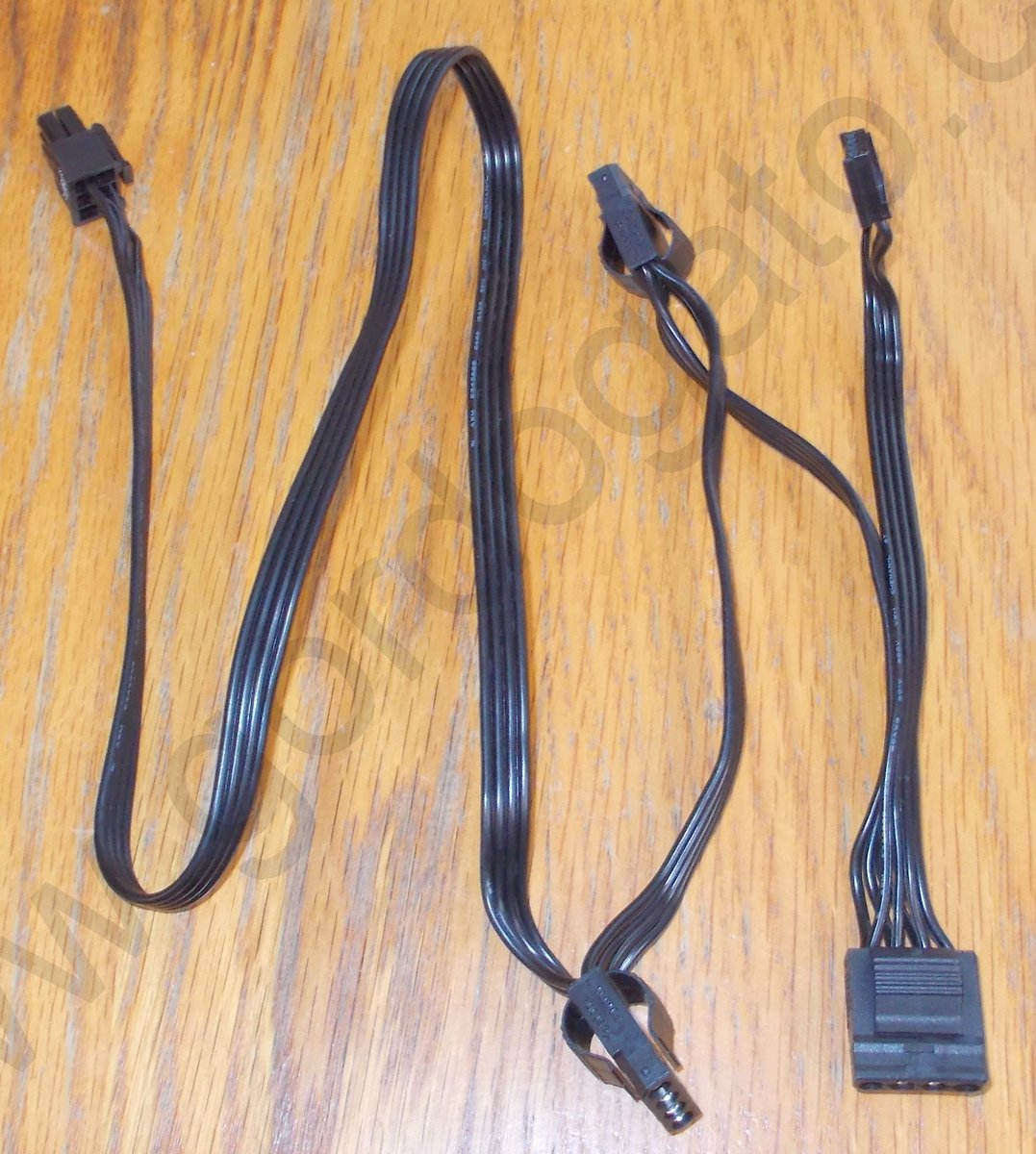 This is an original cable for use with an EVGA 850BQ. This cable has 3 Molex power connector ends and 1 floppy drive power connector plug. It measures about 39″ long overall with about 21″ between the plug which connects to the power supply and the first Molex plug, with about 5 1/2″ to the next molex plug, another 5 1/2″ to the third molex plug, and about another 6″ to the floppy type power plug on the end. The second picture shows what the pins connect to in the power supply. This may be compatible with other power supplies, but please check with your manufacturer for compatibility BEFORE you purchase this item.