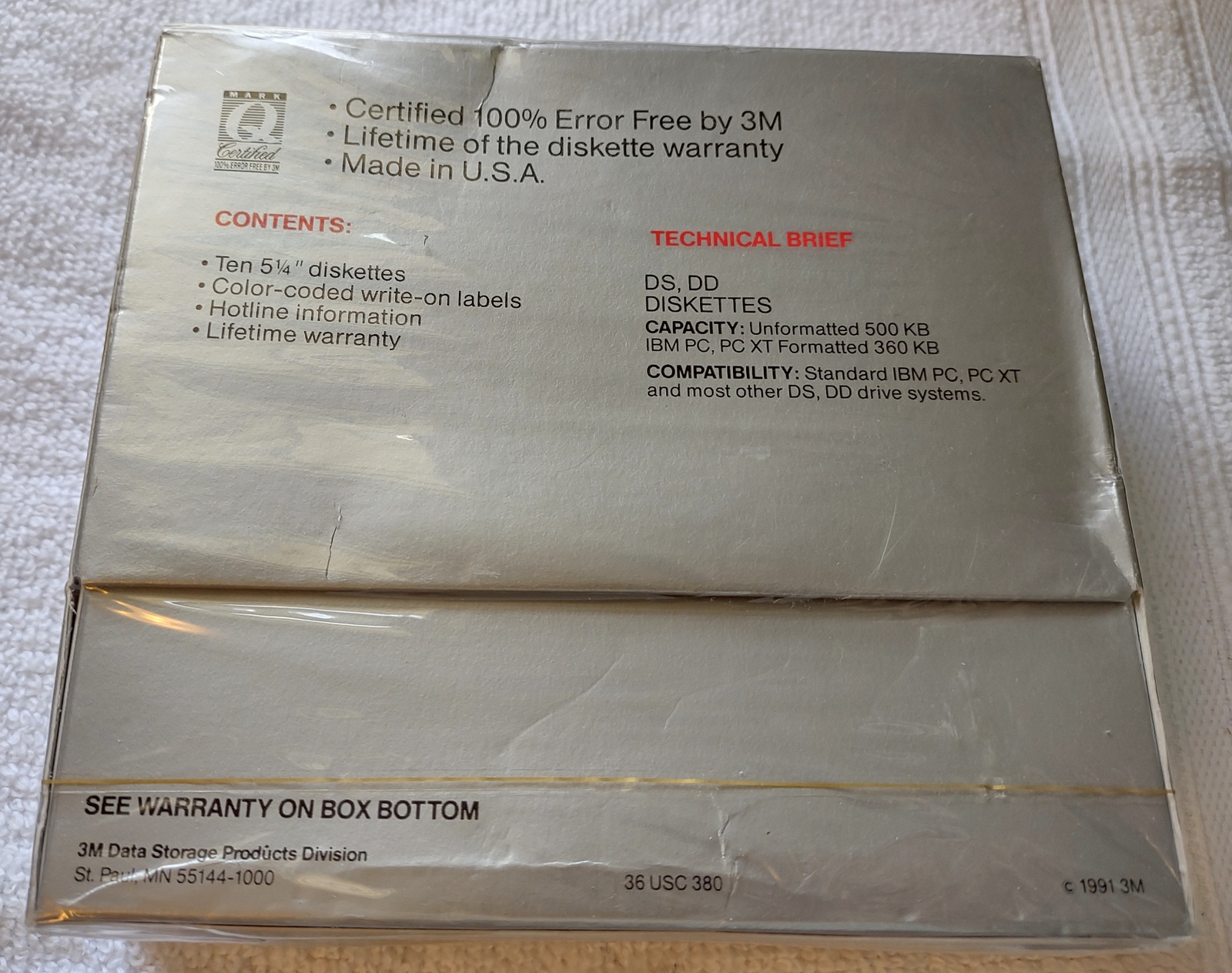 Up for sale is a new, old stock package of 5.25″ floppy diskettes. This item is around 3 decades old and is sold AS-IS for a collectible ONLY! The box is a bit creased – SEE PICTURES! We don’t have any way to test these diskettes!