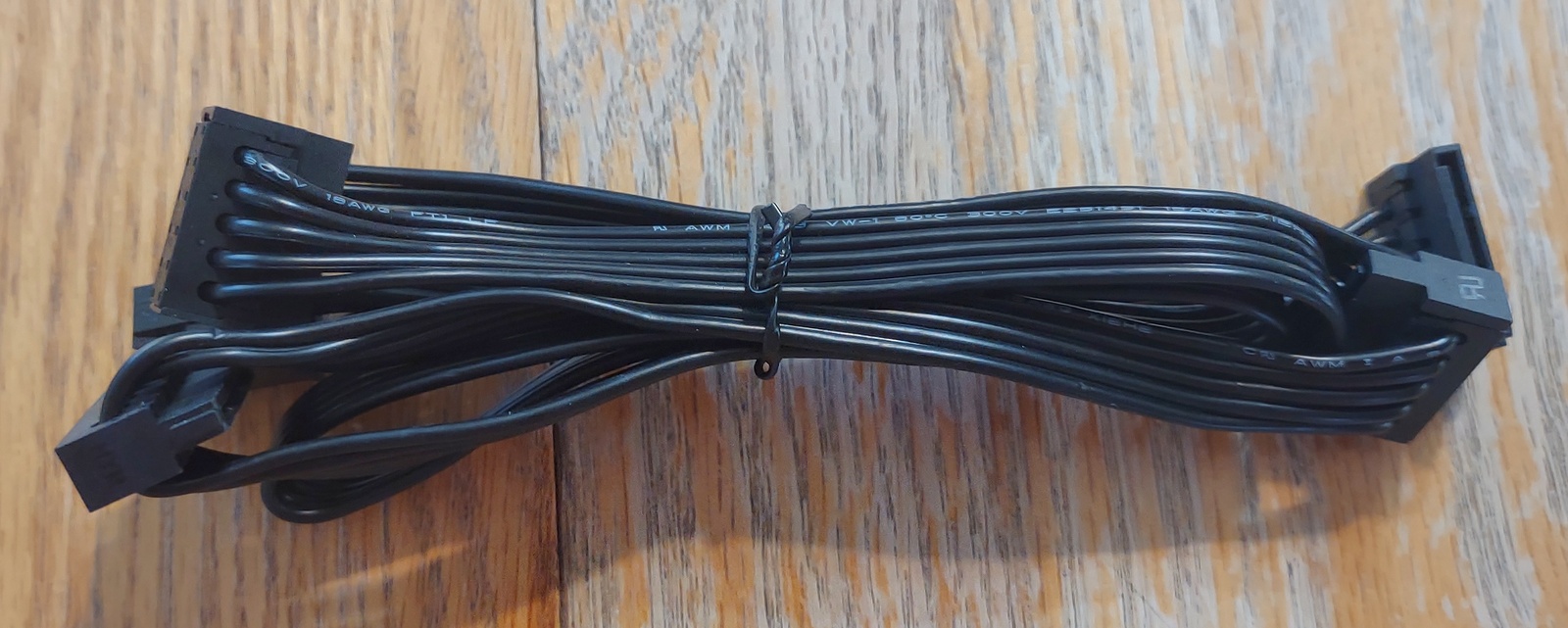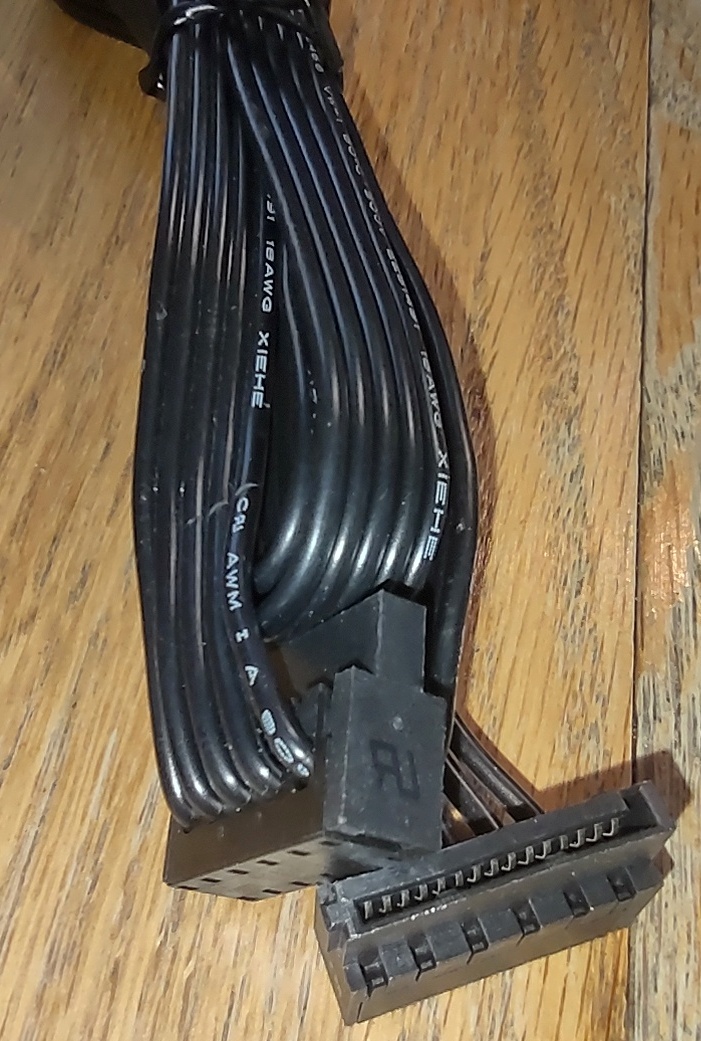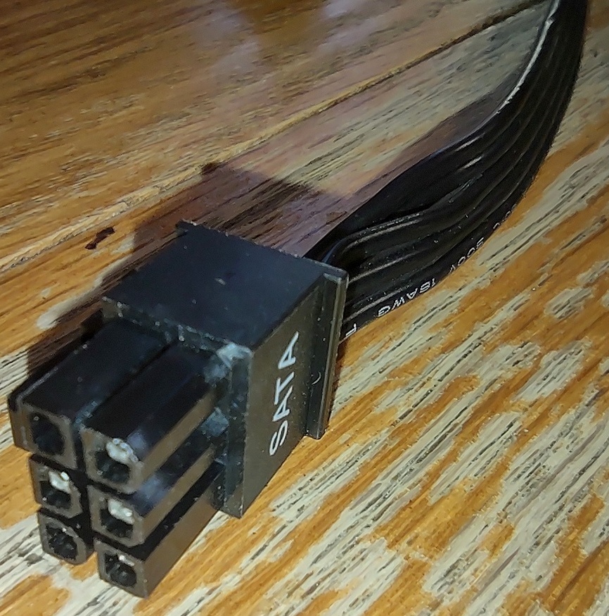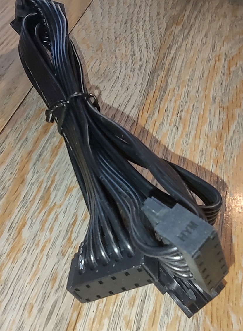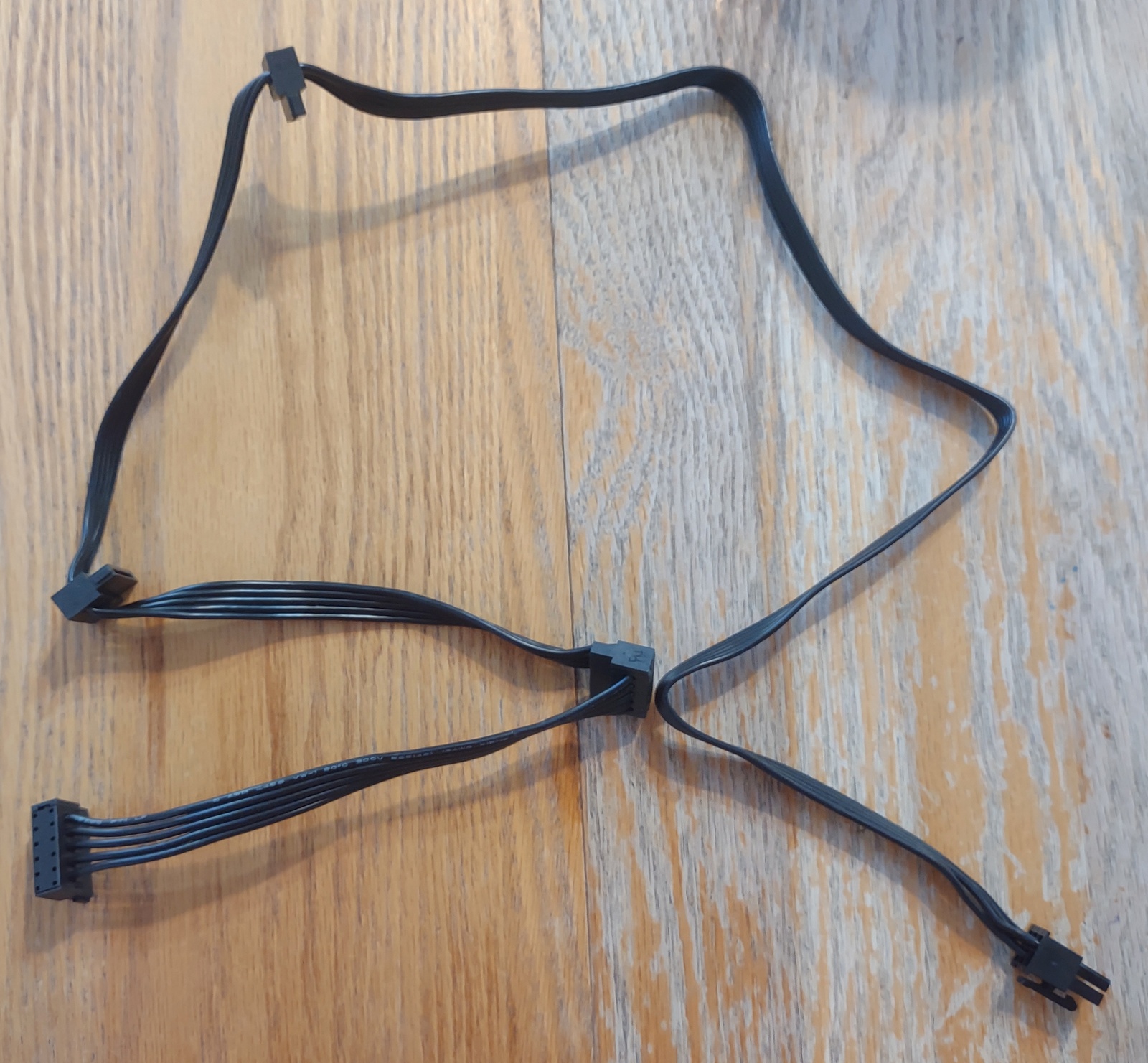 Up for sale is an original cable for use with an EVGA 650BQ. It is for connecting power to your SATA hard drive(s) or optical drive(s)s. It measures about 39″ long with about 21″ between the plug which connects to the power supply and the first SATA power plug, about 6 inches from the first SATA power plug to the second SATA power plug, about 6 inches from the 2nd SATA plug to the third SATA plug, and about another 6 inches to the SATA power plug on the end. This may be compatible with other power supplies, but please check with EVGA for compatibility BEFORE you purchase this cable.