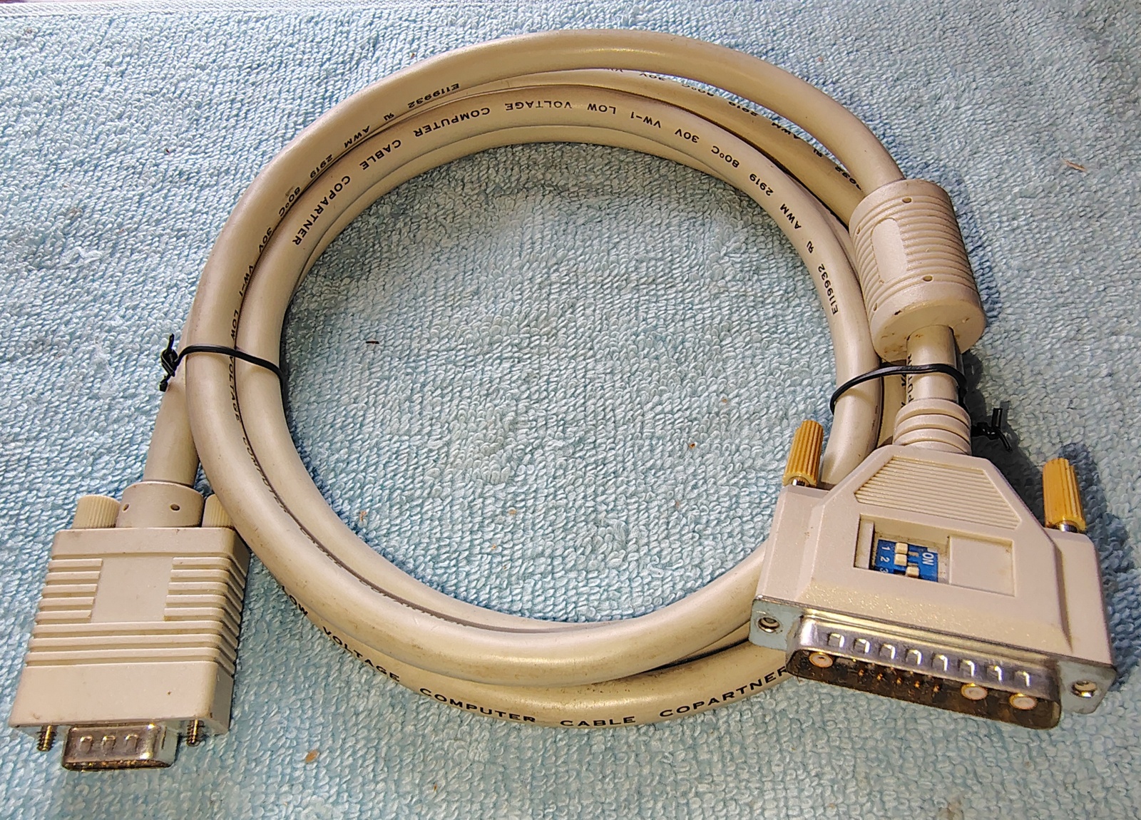 Up for sale is a 13W3 to SVGA fixed frequency monitor cable with DIP switches. This is for connecting your older Sun / SGI workstations from the early 1990s to your SVGA monitor. It is about 6 feet long – please research compatibility before you purchase this one! We’re not sure what DIP switches do, we suspect it has something to do with setting the frequency.