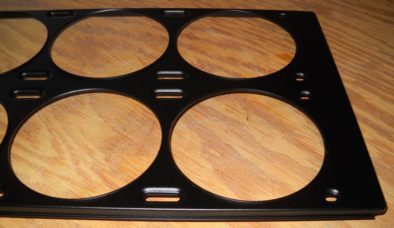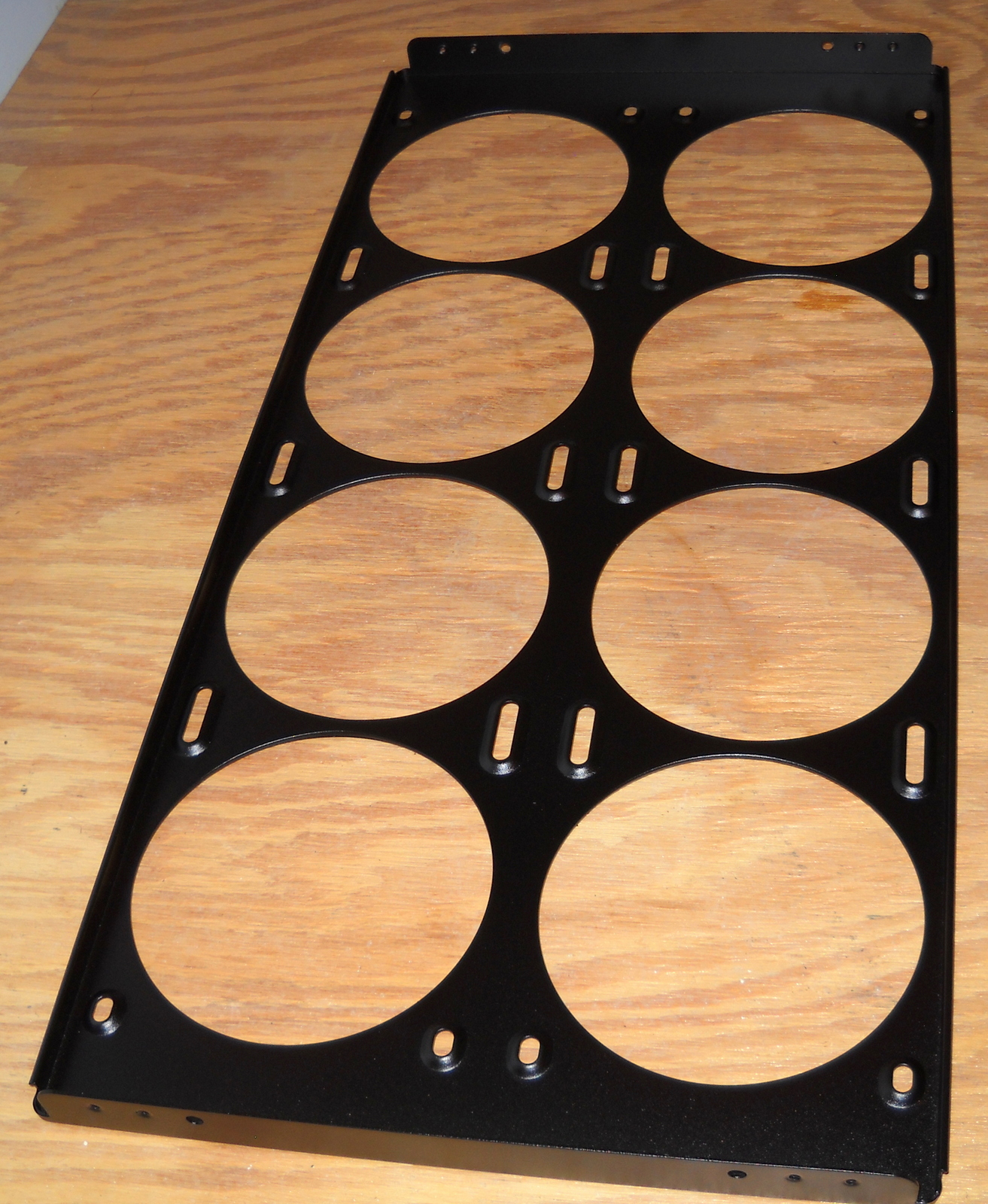 Up for sale is an internal bracket for a Corsair Obsidian 1000D computer case. This bracket / tray is for mounting 8 120mm cooling fans in an Obsidian 1000D case. (the fasteners for attaching the fans to the bracket are NOT included and you will need to provide your own) Included are the screws you see in the pictures which are for securing the bracket to the case. Hope someone out there on the internet can put it to use! It also might be useful in your own custom creation – it measures about 21 1/4″ long x 10 1/2″ wide x 1 13/16″ tall and is made of steel and painted black.