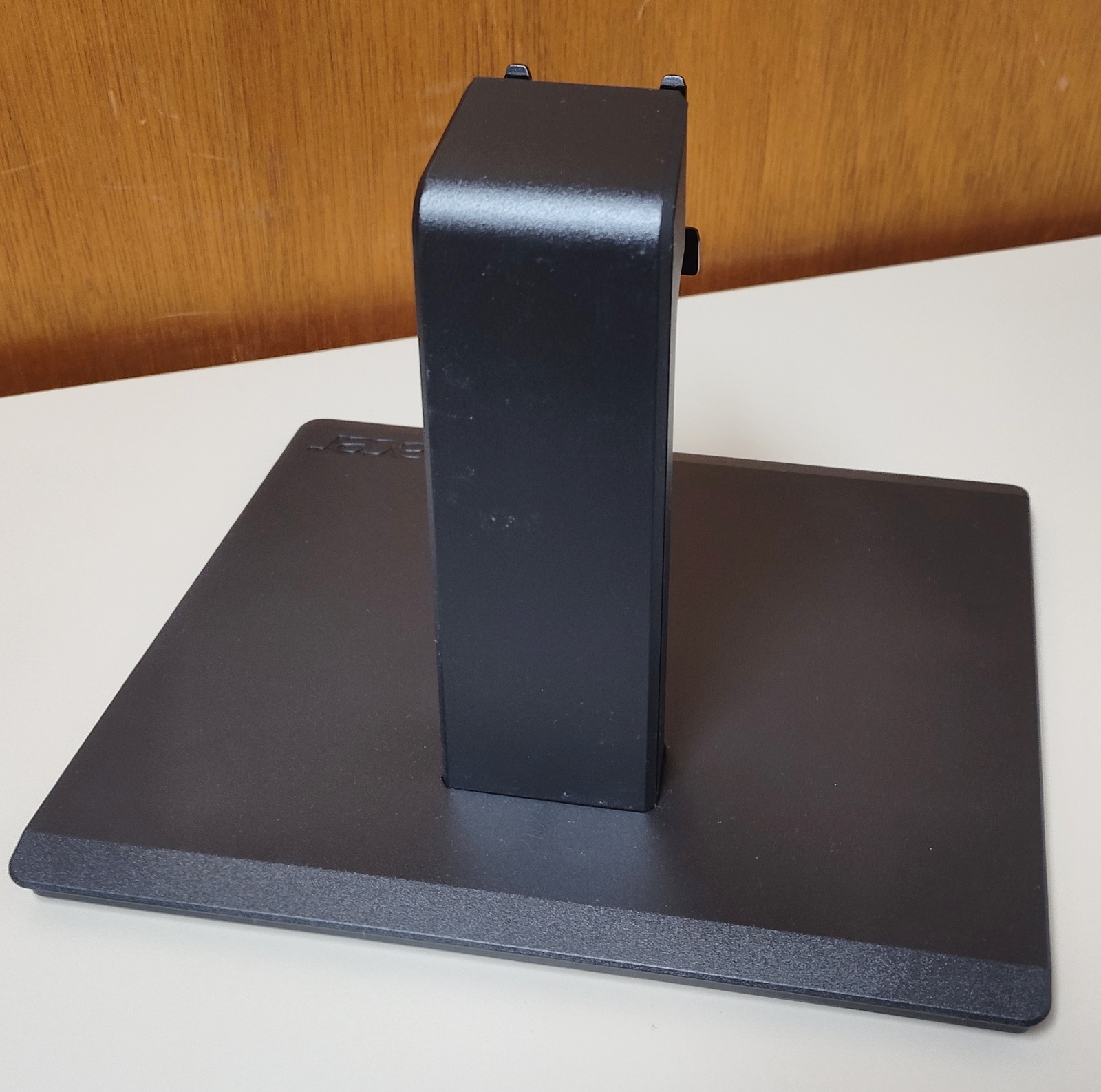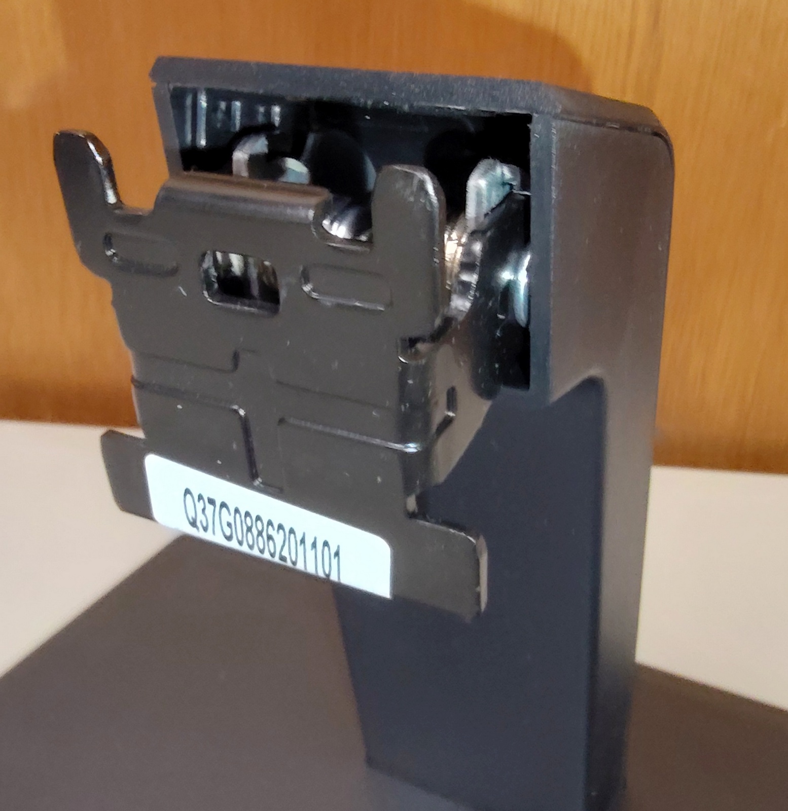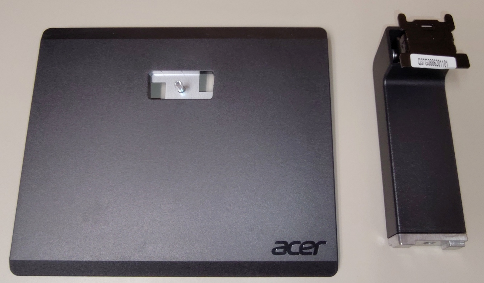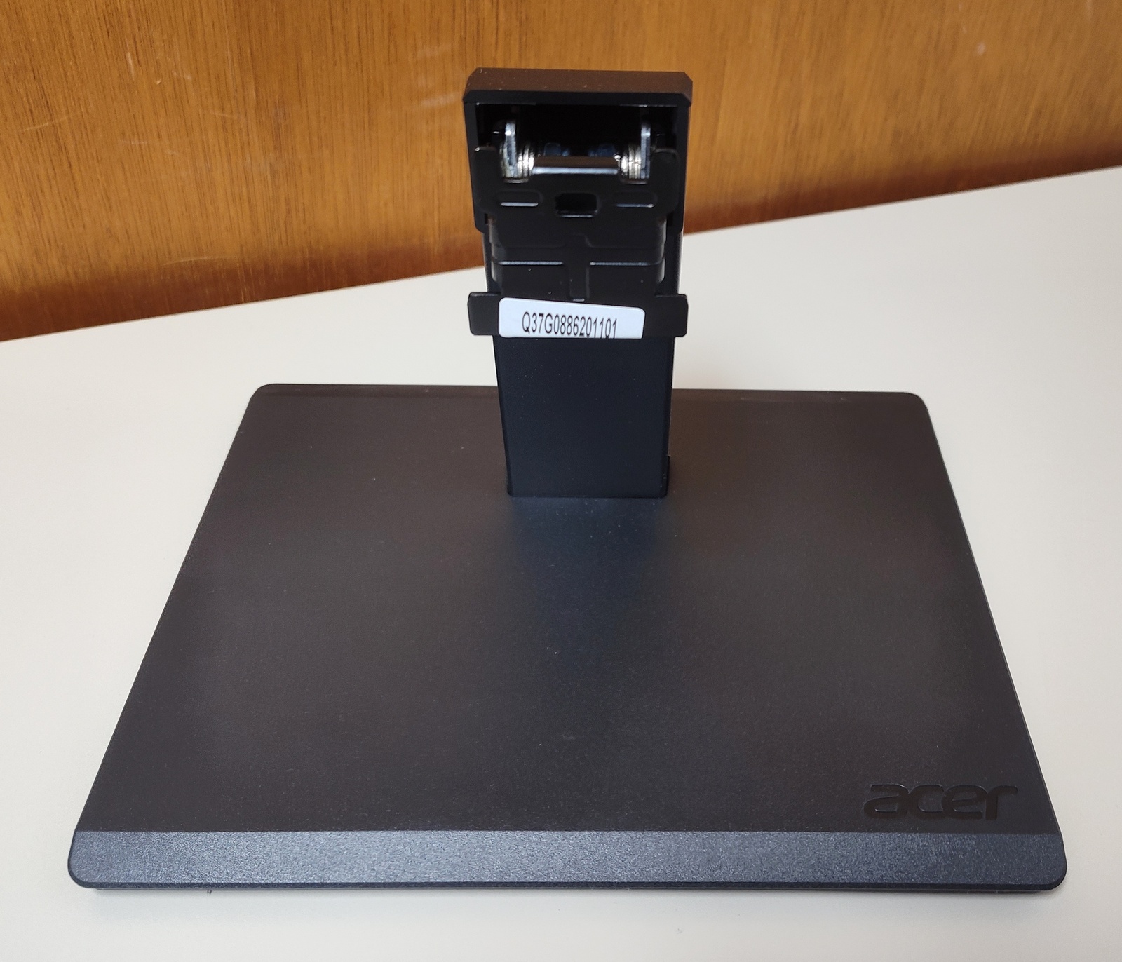 Up for sale is a stand that came with an Acer VW237Q monitor and is in unused condition – the monitor was immediately mounted to a stand for dual screens and this stand was not needed Hope someone out there can use it. It may fit other Acer monitors, but we’re not sure which ones, so please check with Acer for compatibility with your monitor BEFORE you purchase this stand. This stand was left over from an install back in 2020 and has sat on the shelf since – we’re not likely to use it, so we’re offering it on the internet in hopes that someone out there can put it to use. The monitor this came with was manufactured in December 2018, but we did not buy it and put it into service until 2020. The metal bracket just pushes up into the appropriate slot on the monitor. The bracket measures approximately 1 13/16″ wide across the bottom by just under 1 1/4″ tall (measured to the top of the top tabs).