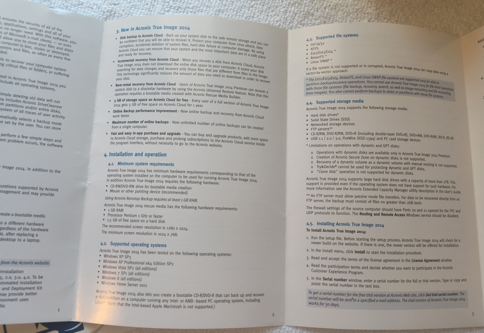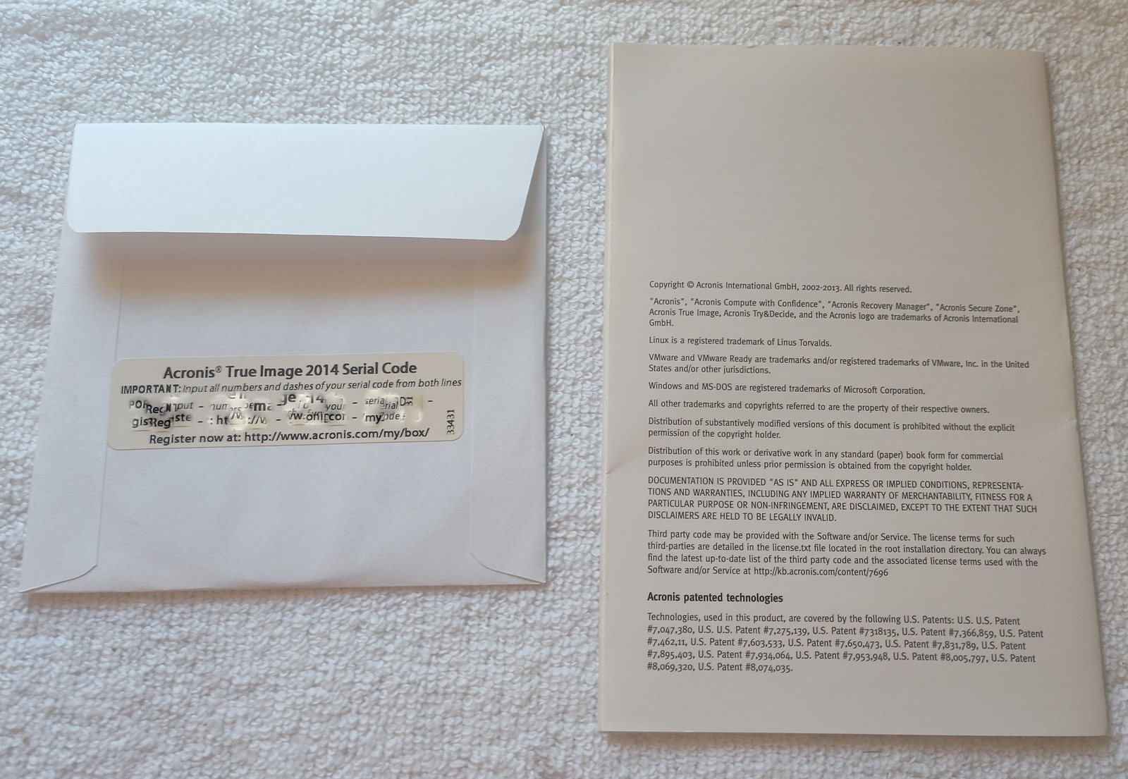 Up for sale is the original install disc, sleeve, serial number, and Quick Start Guide for Acronis True Image 2014 for 1 computer. This is an old version of Acronis which we no longer use and no longer need. Upon purchase of this item, we will use the license transfer feature in our Acronis account to transfer the license to your Acronis account (your email address) – this is shown in the last picture. We will also send through the mail the original install disc, sleeve, serial number, and Quick Start Guide. What you see in the pictures is what you get. If you need backup software for an older operating system, then this is a pretty good one! After transfer of the license, you will be able to go ahead and download and activate the software and don’t need to wait for it to arrive in the mail.