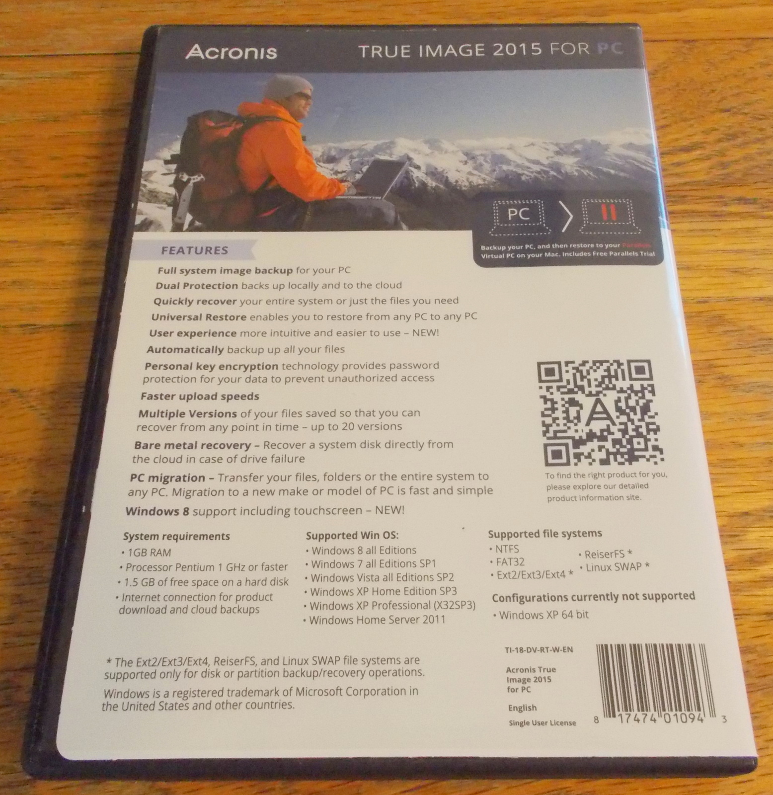 Up for sale is the original install disc, case, and serial number for Acronis True Image 2015 for 1 computer. This is an old version of Acronis which we no longer use and no longer need. Upon purchase of this item, we will use the license transfer feature in our Acronis account to transfer the license to your Acronis account (your email address) – this is shown in the last picture. We will also send through the mail the original install disc, case, and serial number. What you see in the pictures is what you get. If you need backup software for an older operating system, then this is a pretty good one! Barcode: 817474010943