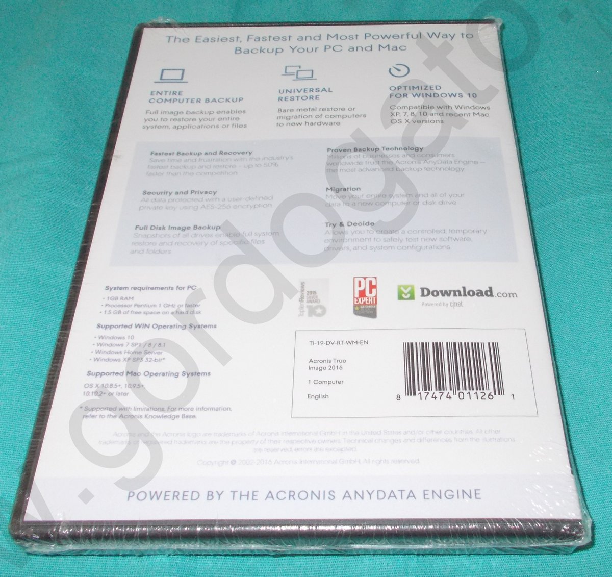 Up for sale is Acronis True Image 2016 Software – new, old stock. These were purchased, but never used – we have a total of two of these available – purchase both and combine on the shipping.