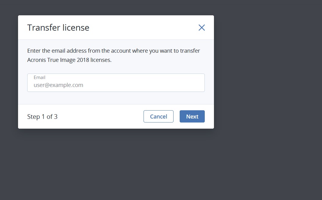 To be able to activate the software, you will need to have it transferred to your Acronis account!
