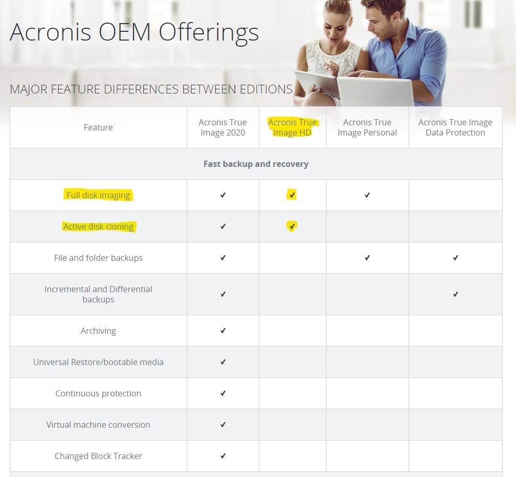 Acronis summarizes the differences between the HD version and the full version in a table here. A screenshot of this table is also attached to this listing as one of the pictures. Acronis HD (the one in this listing) supports full backup and recovery of a system only(for example; making and backup of a conventional HDD and restoring it to an SSD), It does NOT support file level backup, incremental/differential backup, or scheduling of backups. If you need those features, you will need to purchase the full version of the program.