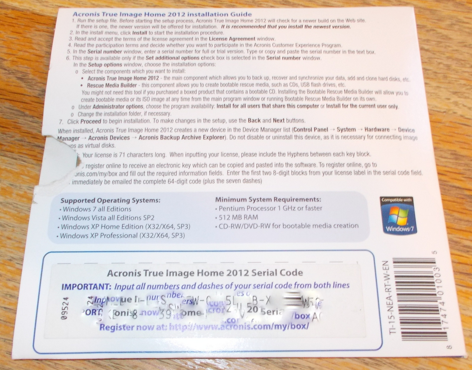 Up for sale is the original install disc and serial number for Acronis True Image Home 2012 for 1 computer. This is an old version of Acronis which we no longer use and no longer need. Upon purchase of this item, we will use the license transfer feature in our Acronis account to transfer the license to your Acronis account (your email address) – this is shown in the fourth picture. We will also send through the mail the original install disc, and sleeve with serial number printed on it. What you see in the pictures is what you get. If you need backup software for an older operating system, then this is a pretty good one!