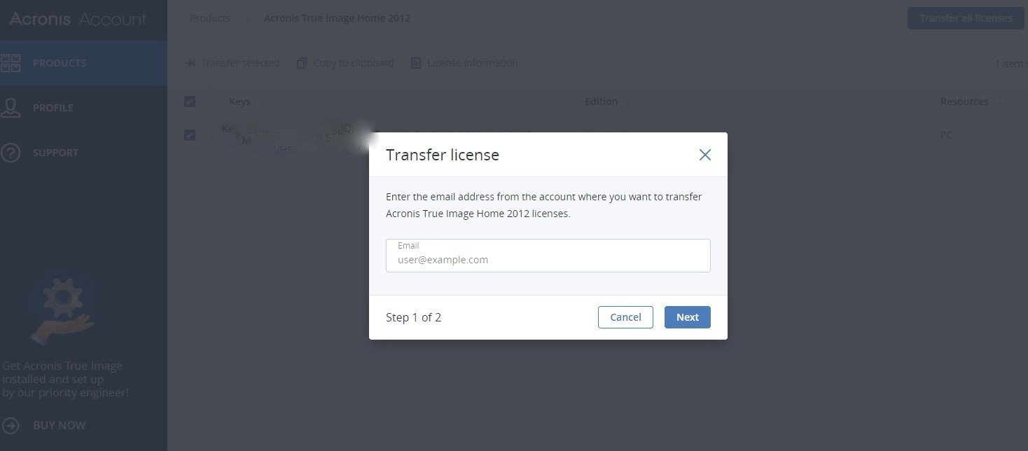 To be able to activate the software, you will need to have it transferred to your Acronis account!