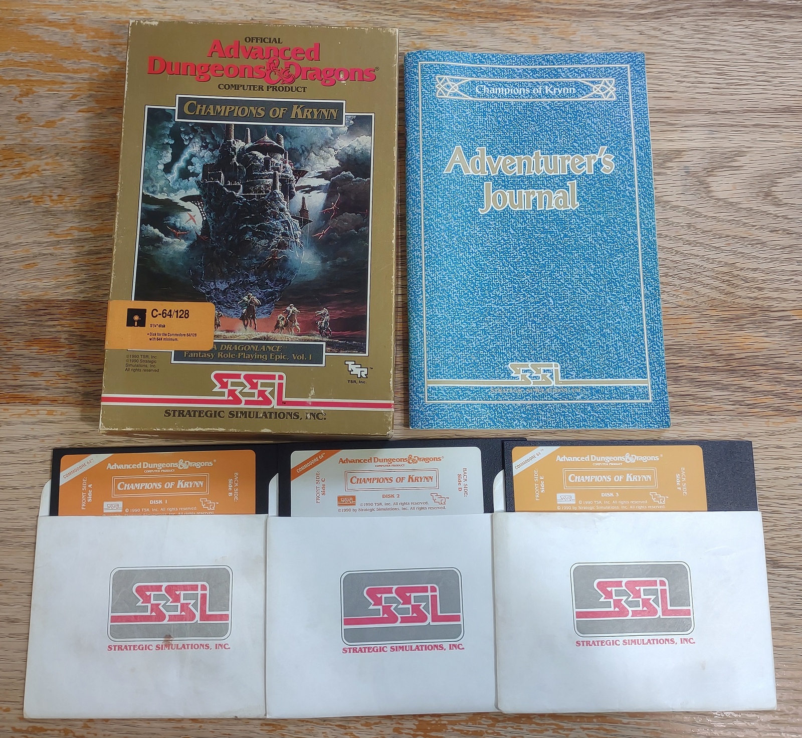 Up for sale is the original box, program diskettes, and Adventurer’s Journal for Advanced Dungeons & Dragons Champions of Krynn for Commodore 64/128 from 1990. We don’t know the functionality of the diskettes as they are from 1990 and we have no way to test them. So, this is sold AS-IS for a collectible only! Hope someone out there is interested in collecting it or trying to get it going on their vintage Commodore. This is sold AS-IS for a collectible only as it is decades old! Barcode: 016685051305.