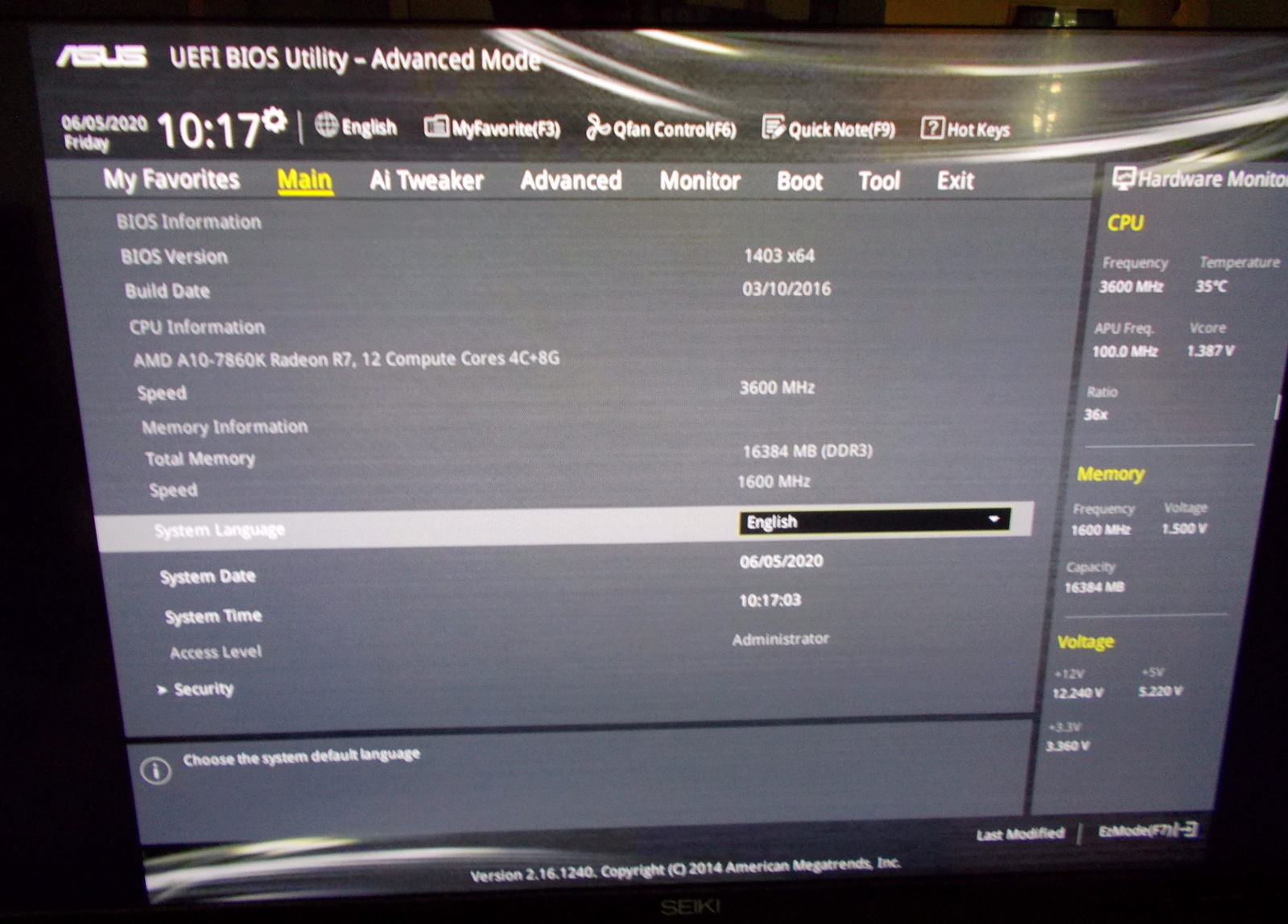 - Asus A68HM-E Motherboard w/ UEFI BIOS 1403 (3/10/2016)