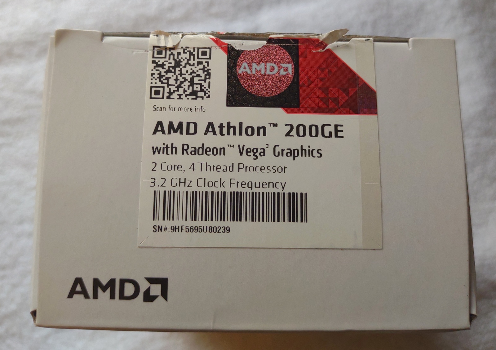 Up for sale is an AMD Athlon 200GE Socket AM4 APU. We put this one in service in July of 2021 on an Asus B450M-A/CSM motherboard and we have now upgraded to a newer, faster processor. So, this one is left over. Hope someone out there on the internet can put it to use! It is in good used condition and includes the original box, heat sink and fan, sticker, as well as a partial tube of Noctua NT-H1 thermal paste compound.