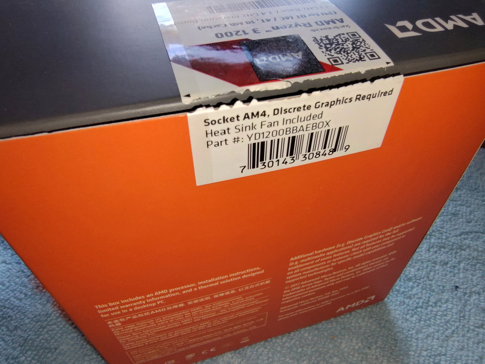 Up for sale is an AMD Ryzen 3 1200 Socket AM4 CPU. We put this one in service in December of 2019 on an ASRock B450M/ac motherboard and, in order to upgrade to Windows 11, we have now upgraded to a newer, faster processor. So, this one is left over. Hope someone out there on the internet can put it to use! It is in good used condition and includes the original box, heat sink and fan, sticker, as well as a partial tube of Noctua NT-H1 thermal paste compound. This processor is too old to run Windows 11 AND A discrete graphics card is required to be used with this processor as it does NOT have onboard graphics!