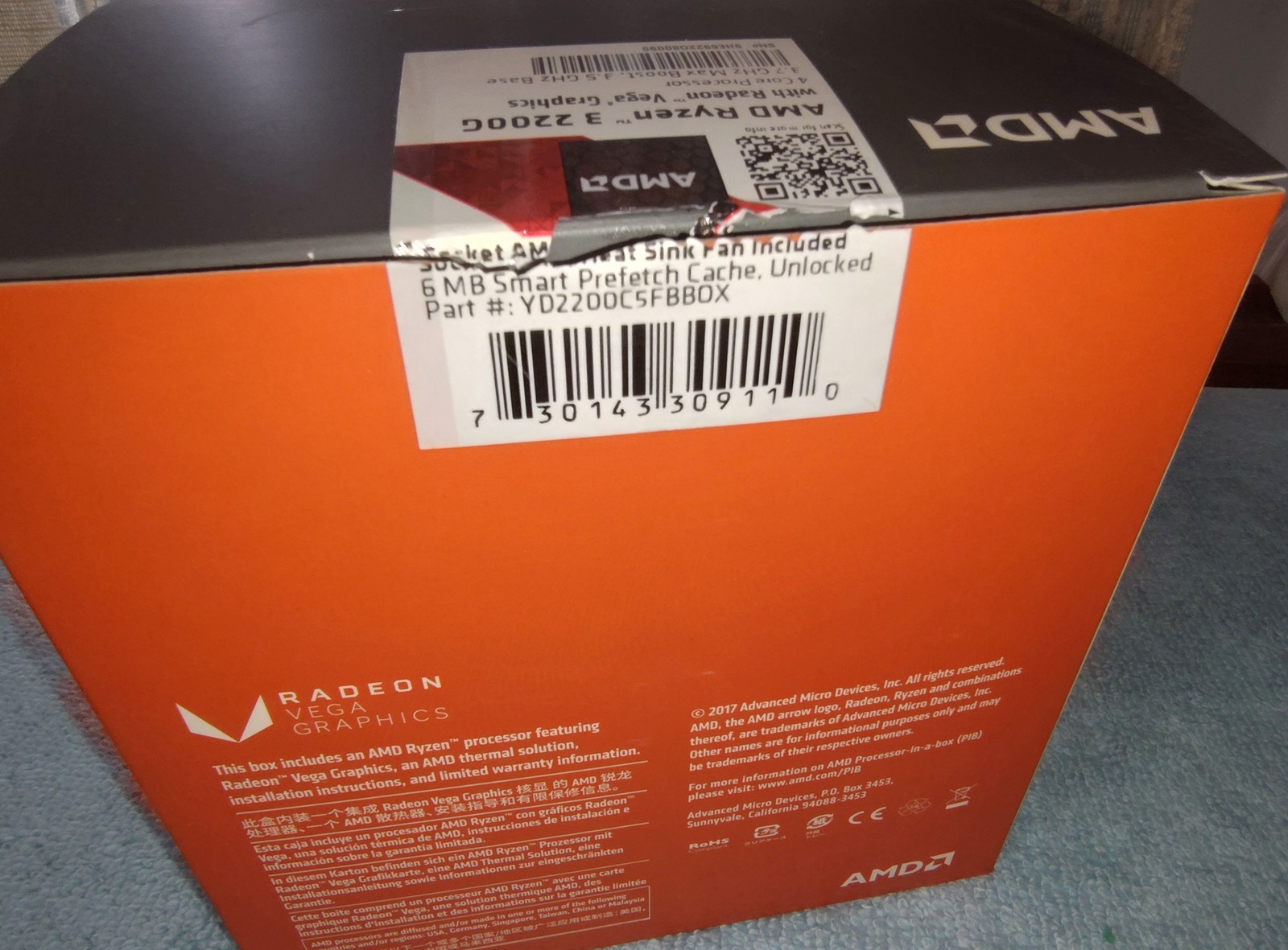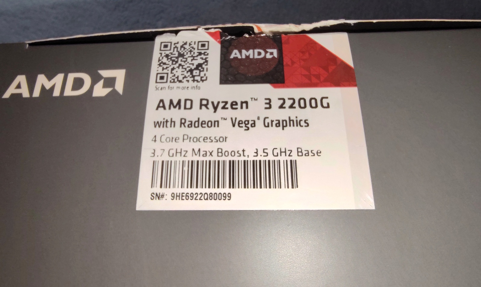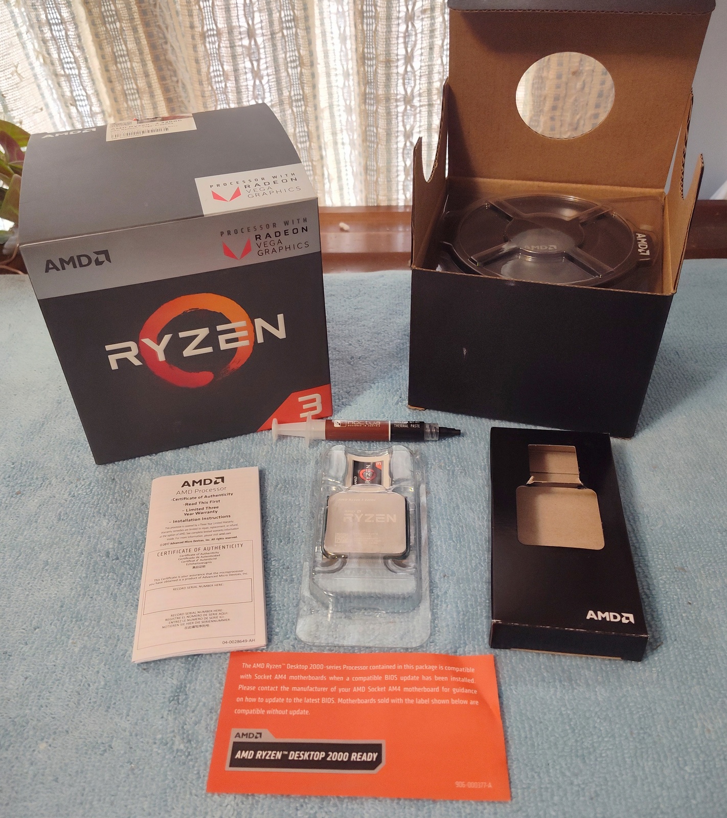 Up for sale is an AMD Ryzen 3 2200G Socket AM4 APU. We put this one in service in September of 2018 on an ASRock A320M-HDV motherboard and we have now upgraded to a newer, faster processor. So, this one is left over. Hope someone out there on the internet can put it to use! It is in good used condition and includes the original box, heat sink and fan, sticker, as well as a partial tube of Noctua NT-H1 thermal paste compound. Please be aware that Windows 11 is NOT supported on this processor!