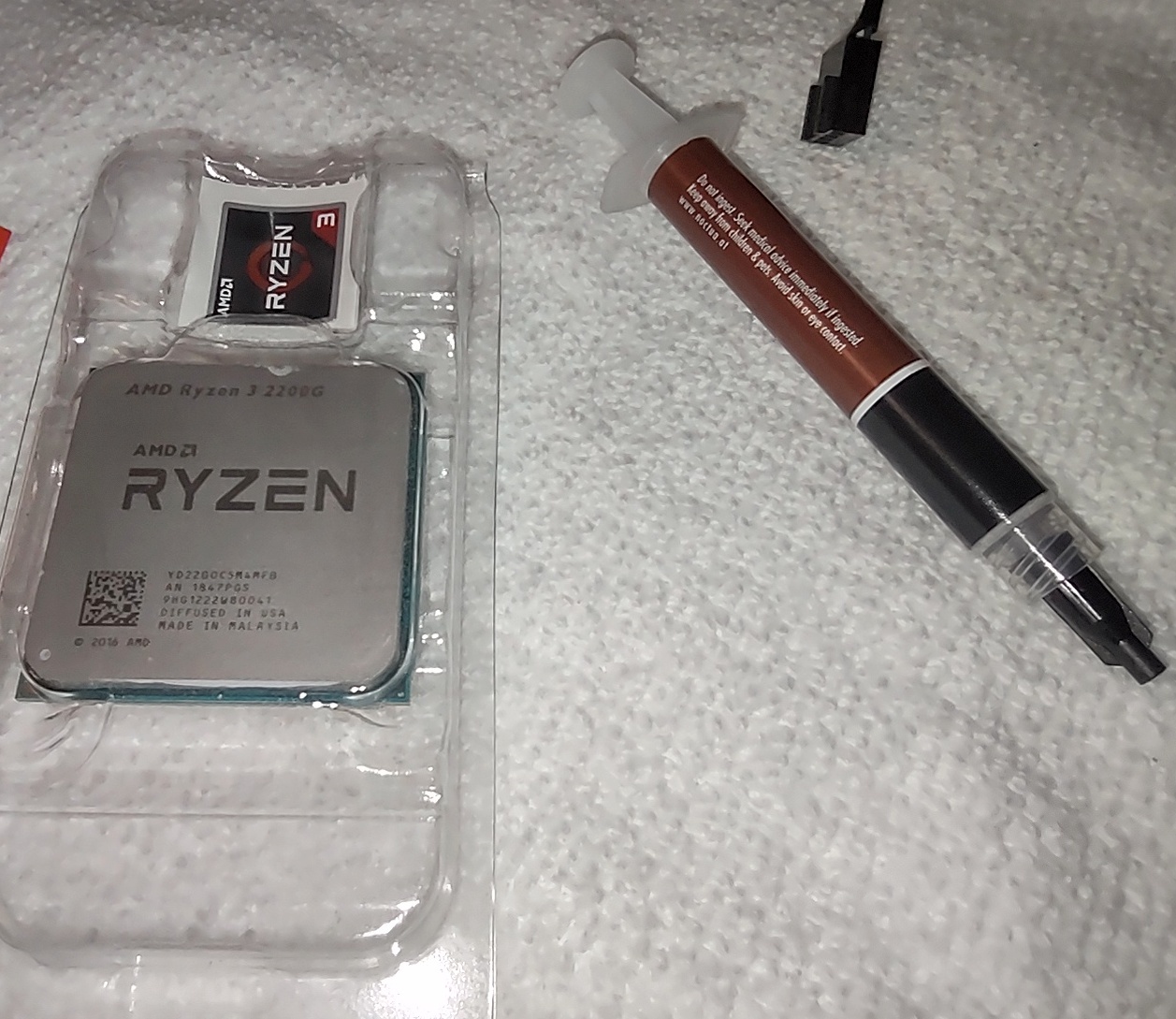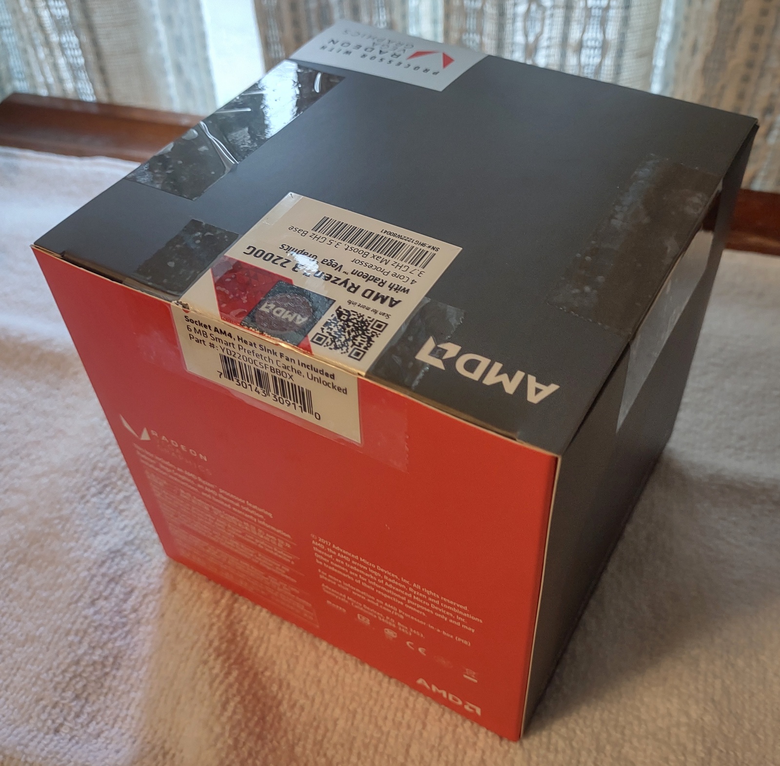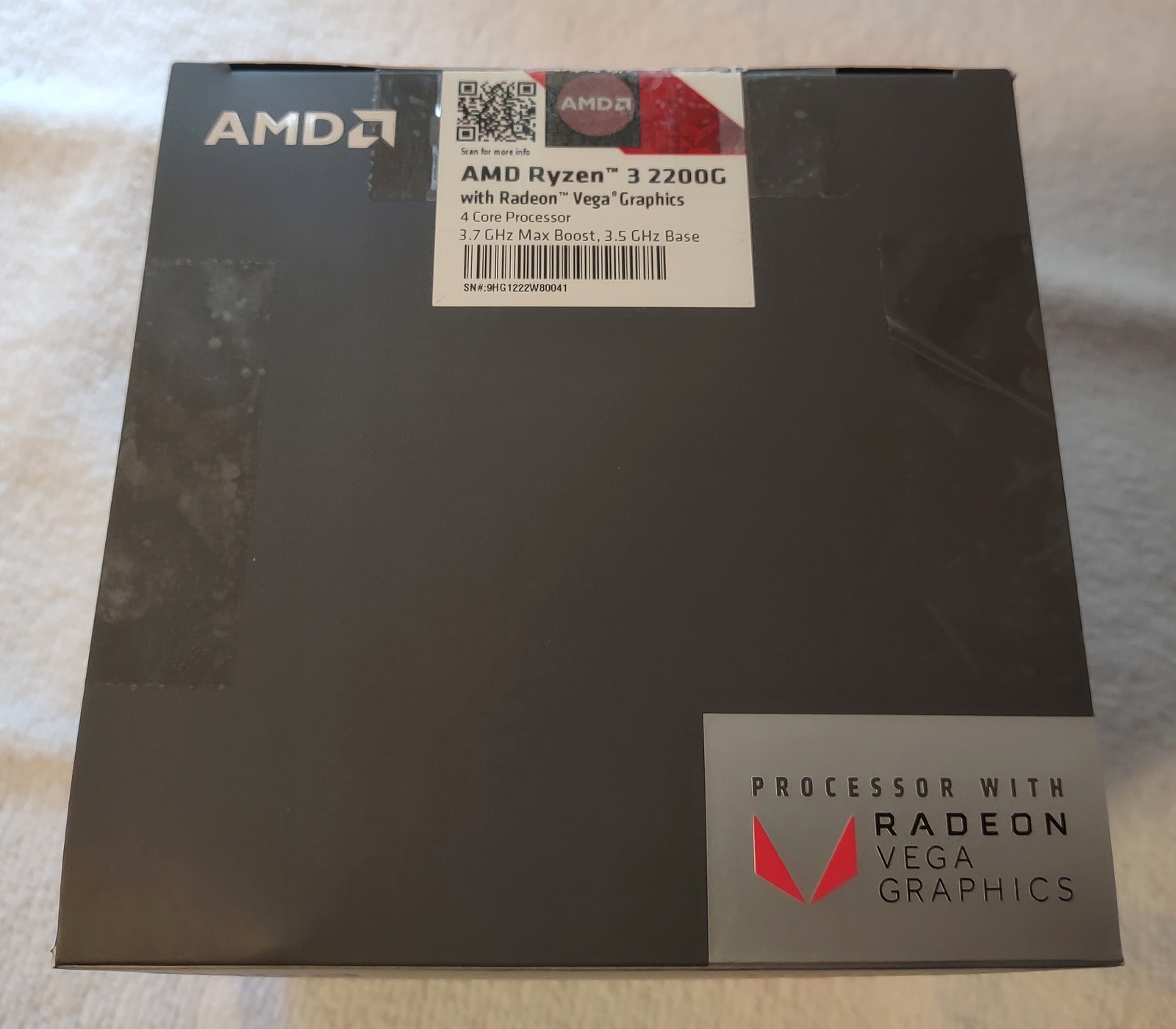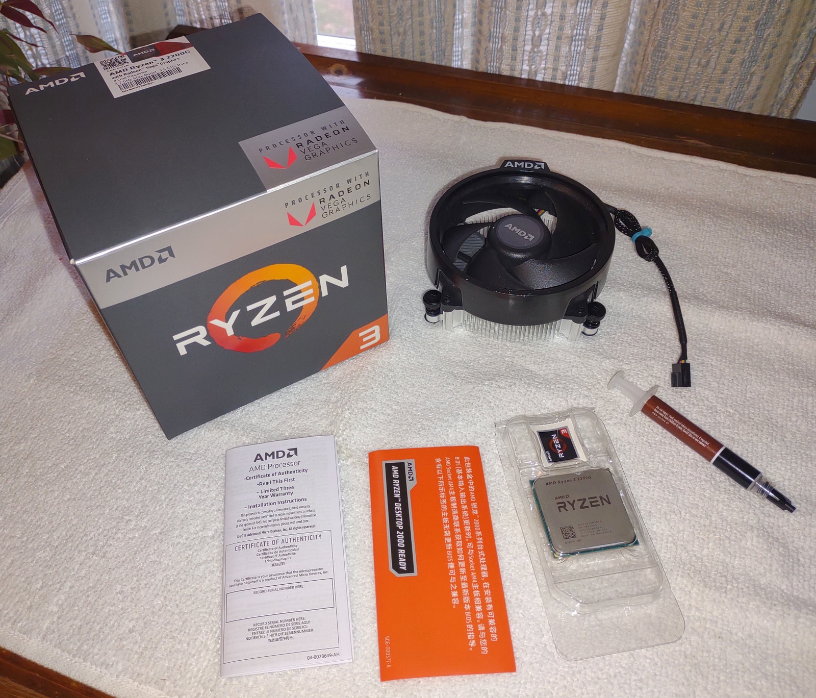 Up for sale is an AMD Ryzen 3 2200G Socket AM4 APU. We put this one in service in July of 2019 on an ASRock A320M-HDV motherboard and we have now upgraded to a newer, faster processor. So, this one is left over. Hope someone out there on the internet can put it to use! It is in good used condition and includes the original box, heat sink and fan, sticker, as well as a partial tube of Noctua NT-H1 thermal paste compound.