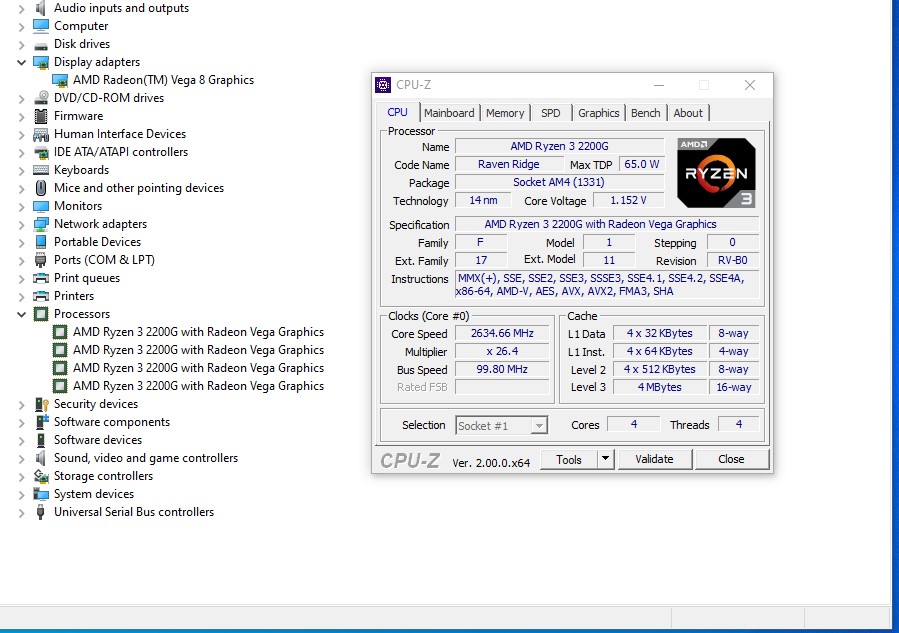 - AMD Ryzen 3 2200G Quad Core APU – Radeon Graphics on chip