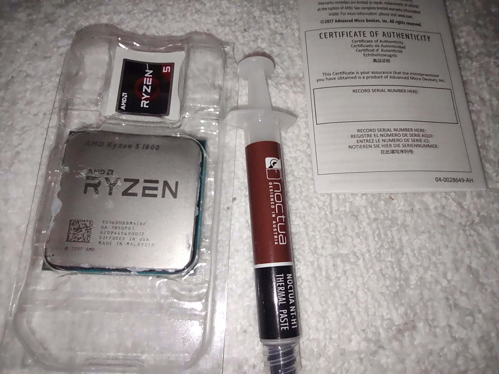 Up for sale is an AMD Ryzen 5 1600AF Socket AM4 CPU. We put this one in service in January of 2020 on an ASRock X470 Master SLI/ac motherboard and we have now upgraded to a newer, faster processor. So, this one is left over. Hope someone out there on the internet can put it to use! It is in good used condition and includes the original box, heat sink and fan, sticker, as well as a partial tube of Noctua NT-H1 thermal paste compound. This was the 2nd run of Ryzen 5 1600 processors with the AF in the part number on the processor itself – we ran this one with Windows 11 just fine and it did not protest as being incompatible. A discrete graphics card is required to be used with this processor as it does NOT have onboard graphics!