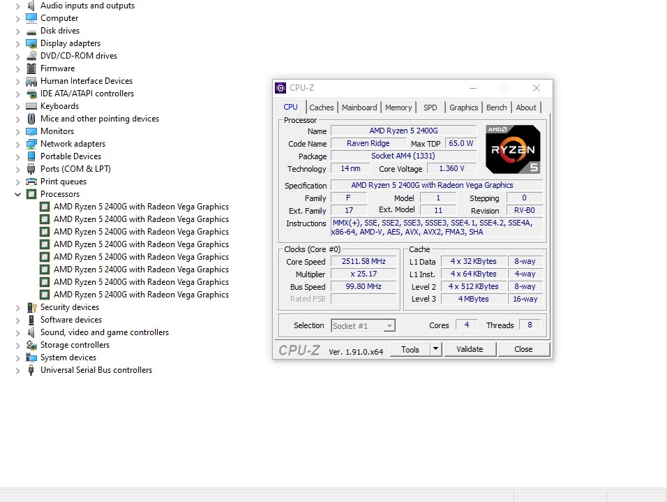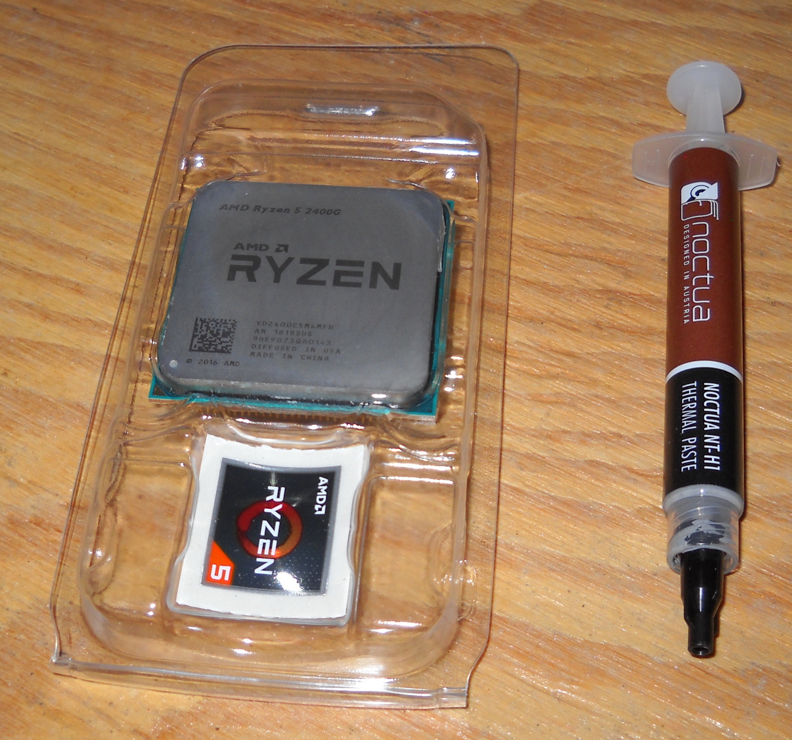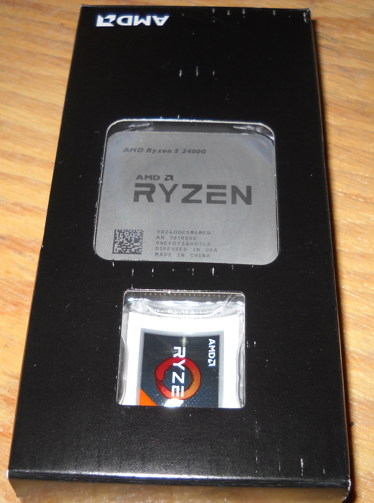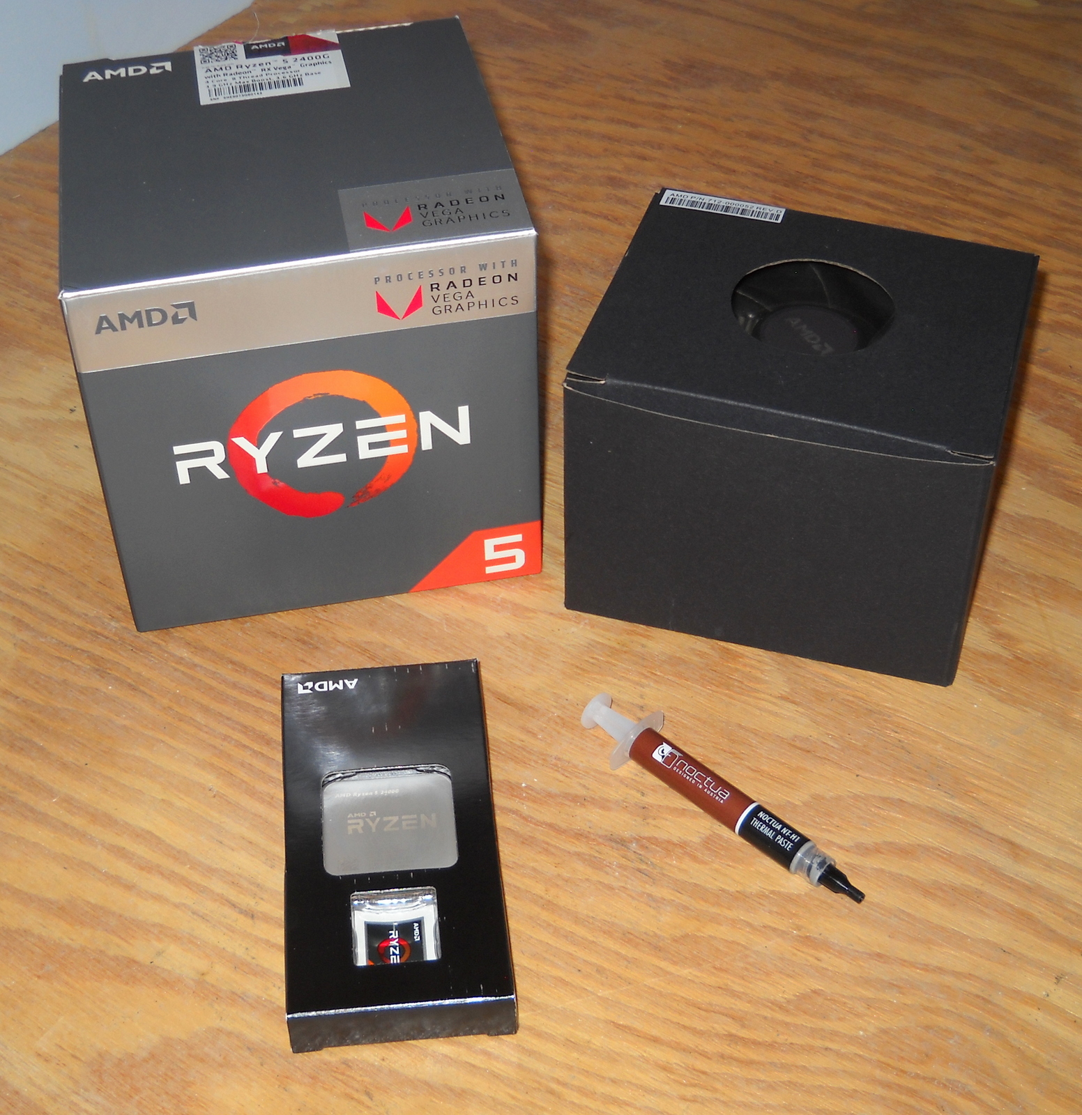 Up for sale is an AMD Ryzen 5 2400G Socket AM4 APU. We put this one in service in July of 2018 on an ASRock A320M-HDV motherboard and we have now upgraded to a newer, faster APU. So, this one is left over. Hope someone out there on the internet can put it to use! It is in good used condition and includes the original box, heat sink and fan, sticker, as well as a partial tube of Noctua NT-H1 thermal paste compound.