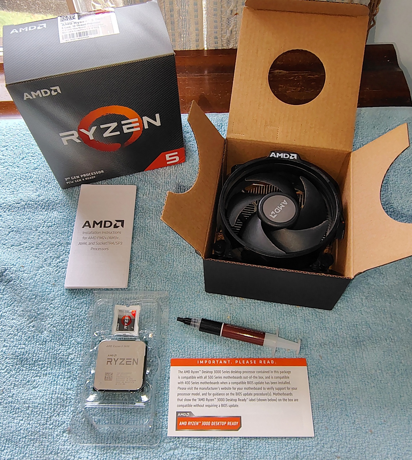 Up for sale is an AMD Ryzen 5 3600 Socket AM4 CPU. We put this one in service in September of 2020 on an ASRock A520m-ITX/ac motherboard and we have now upgraded to a newer, faster CPU. So, this one is left over. Hope someone out there on the internet can put it to use! It is in good used condition and includes the original box, heat sink and fan, sticker, as well as a partial tube of Noctua NT-H1 thermal paste compound.