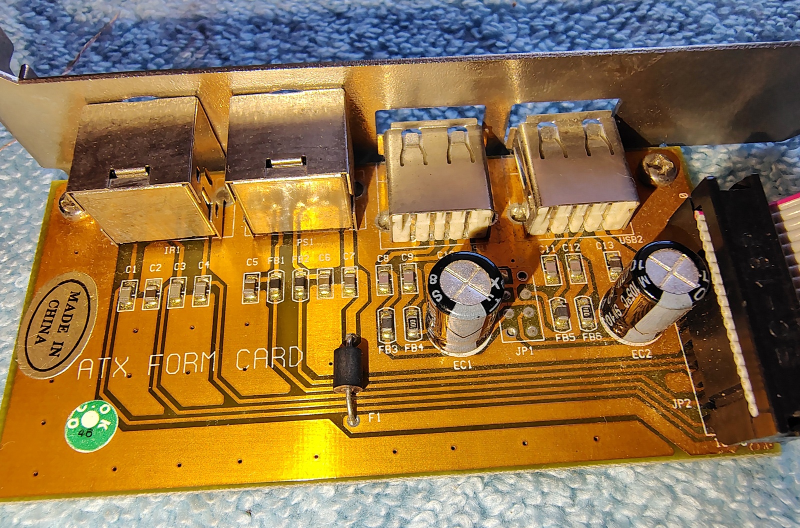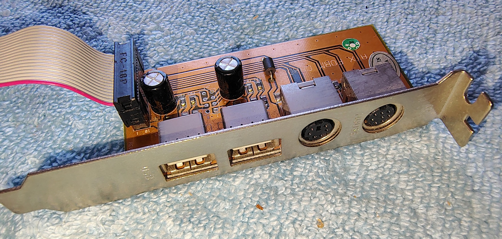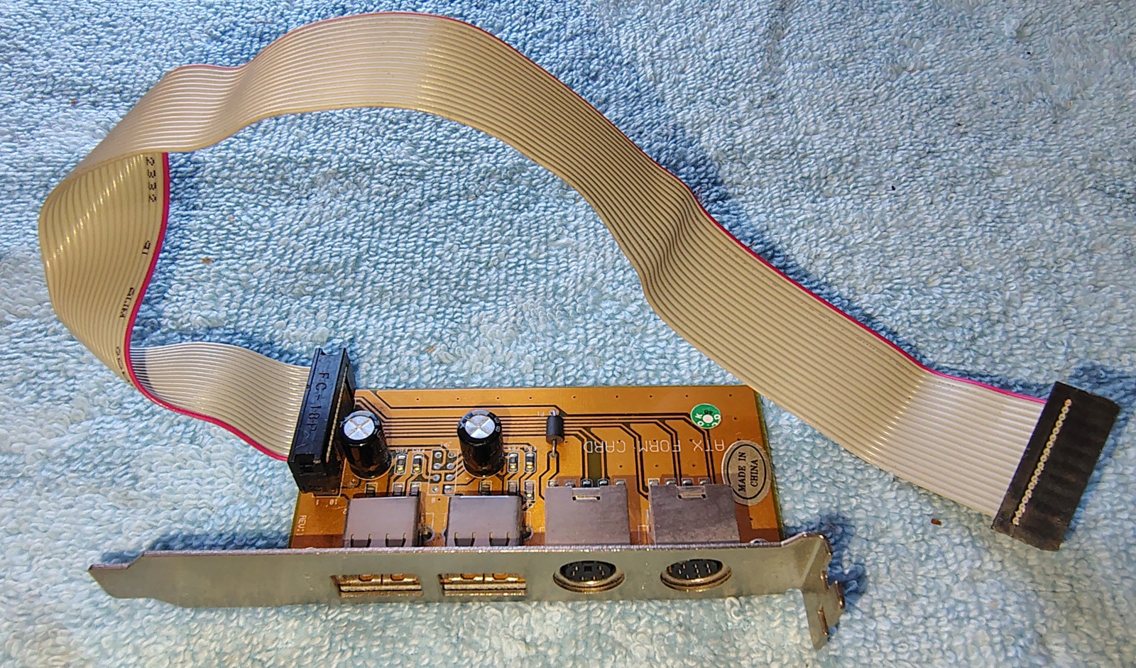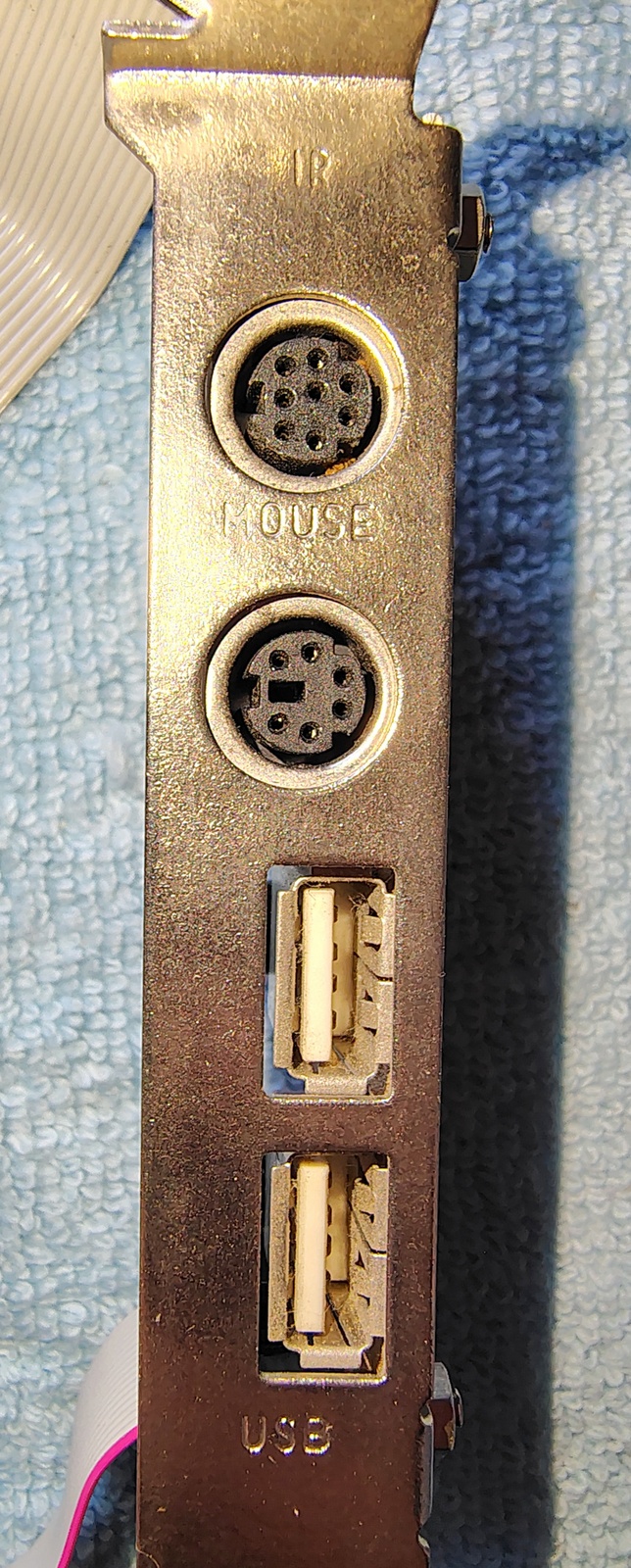 Up for sale is an old adapter card from an Amptron / PC Chips Motherboard Mainboard from 1998. It is used and we don’t have any way to properly test it, so it’s sold as-is for a collectible only. IR Port, PS/2 Port (Mouse), and 2 USB Ports.