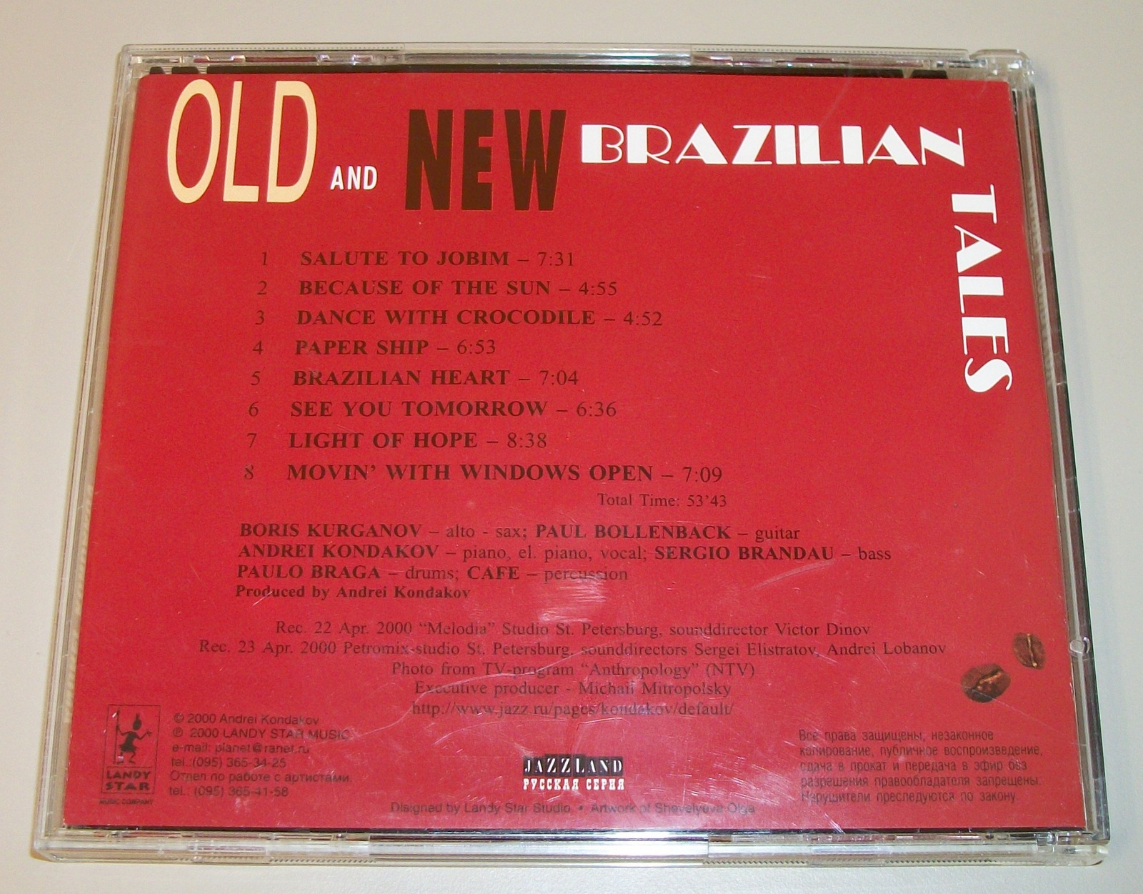 Up for sale is Old And New Brazilian Tales by Russian (Ukrainian) jazz musician Andrei Kondakov on CD from 2000. This is in excellent used condition – please examine the pictures BEFORE you make your decision to purchase this item.