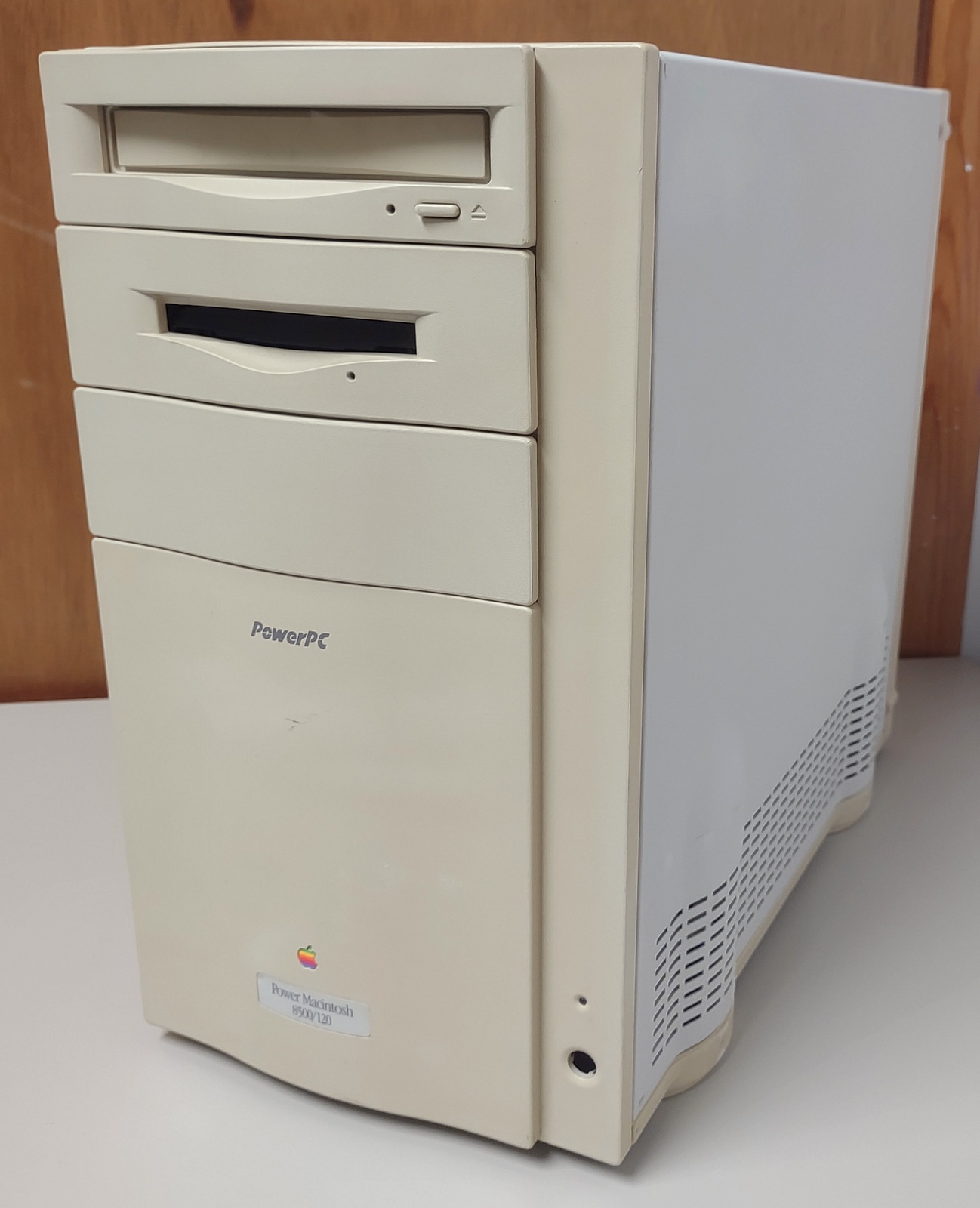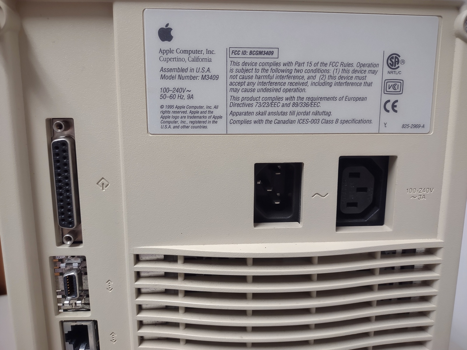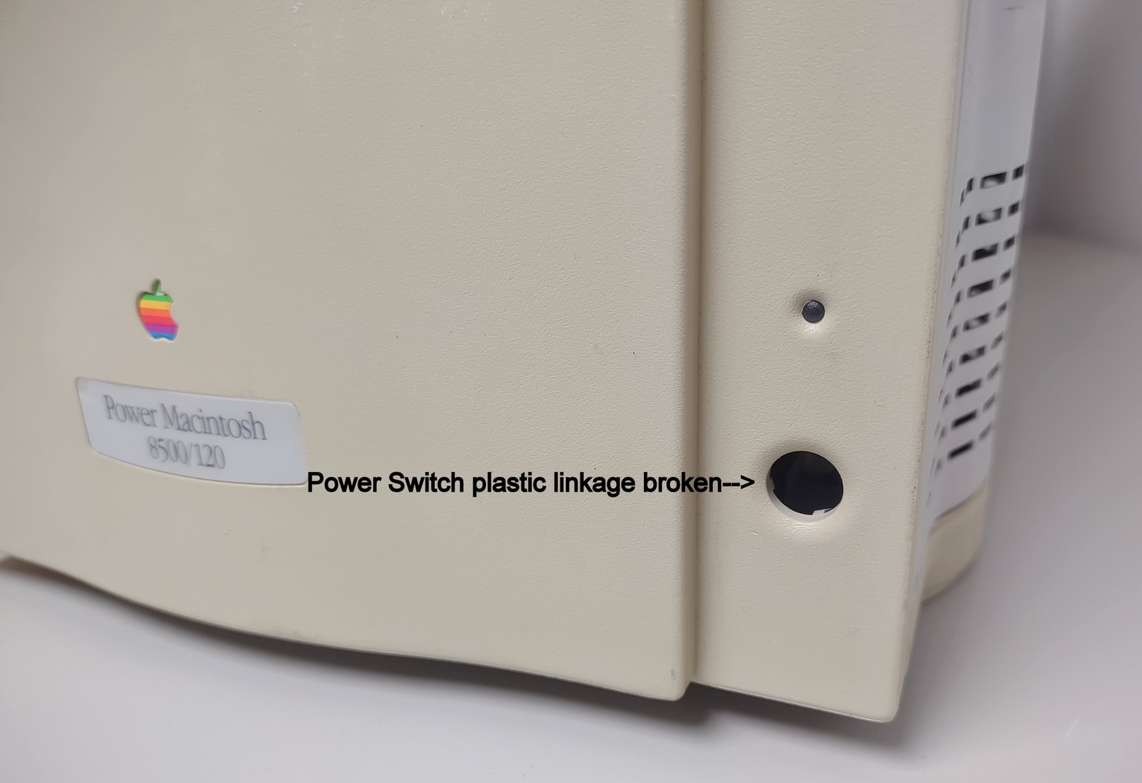 Up for sale is an old Apple Power Macintosh 8500/120 from 1995. This old desktop Mac has a clean install of MacOS System 7.5.2 on its 1GB Quantum SCSI hard drive. The date and time were incorrect which means that it needs a BIOS battery. The plastic on the case is in generally good condition, with the exception of the power switch linkage – this broke when the case was removed to photograph it – so, it will either have to be replaced, possibly glued, or maybe someone can 3D print a new one? Anyway, it is pushing 30 years old and the plastic is brittle. To power it on, you will either need a chopstick to reach into the hole where the power switch linkage used to be, or remove the outer case and access the button which is on the front of the motherboard. The broken pieces of the switch linkage are included with the computer. You only get the desktop PC and the broken plastic pieces from the power switch linkage – you will need to provide your own ADB keyboard and mouse as well as a monitor. This one came with a PCI fast ethernet card installed: Asante 10/100 as an upgrade from the 10MB onboard NIC. We did not try to test the networking, but there are TCP/IP settings in the control panel – you might do better with a newer OS – Apple’s support site says it will run all the way up to OS 9.
