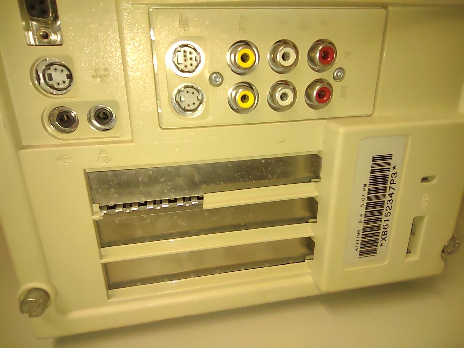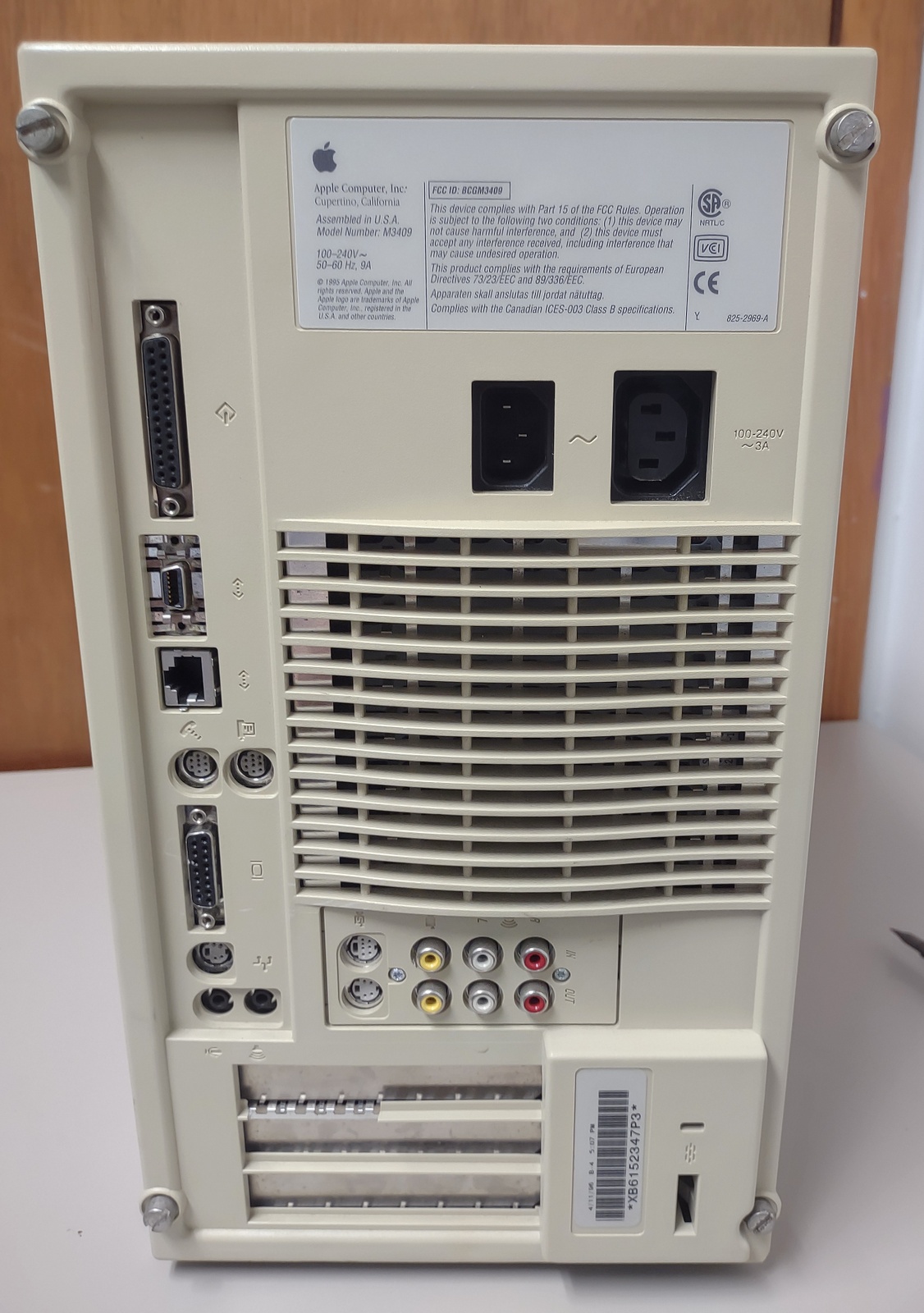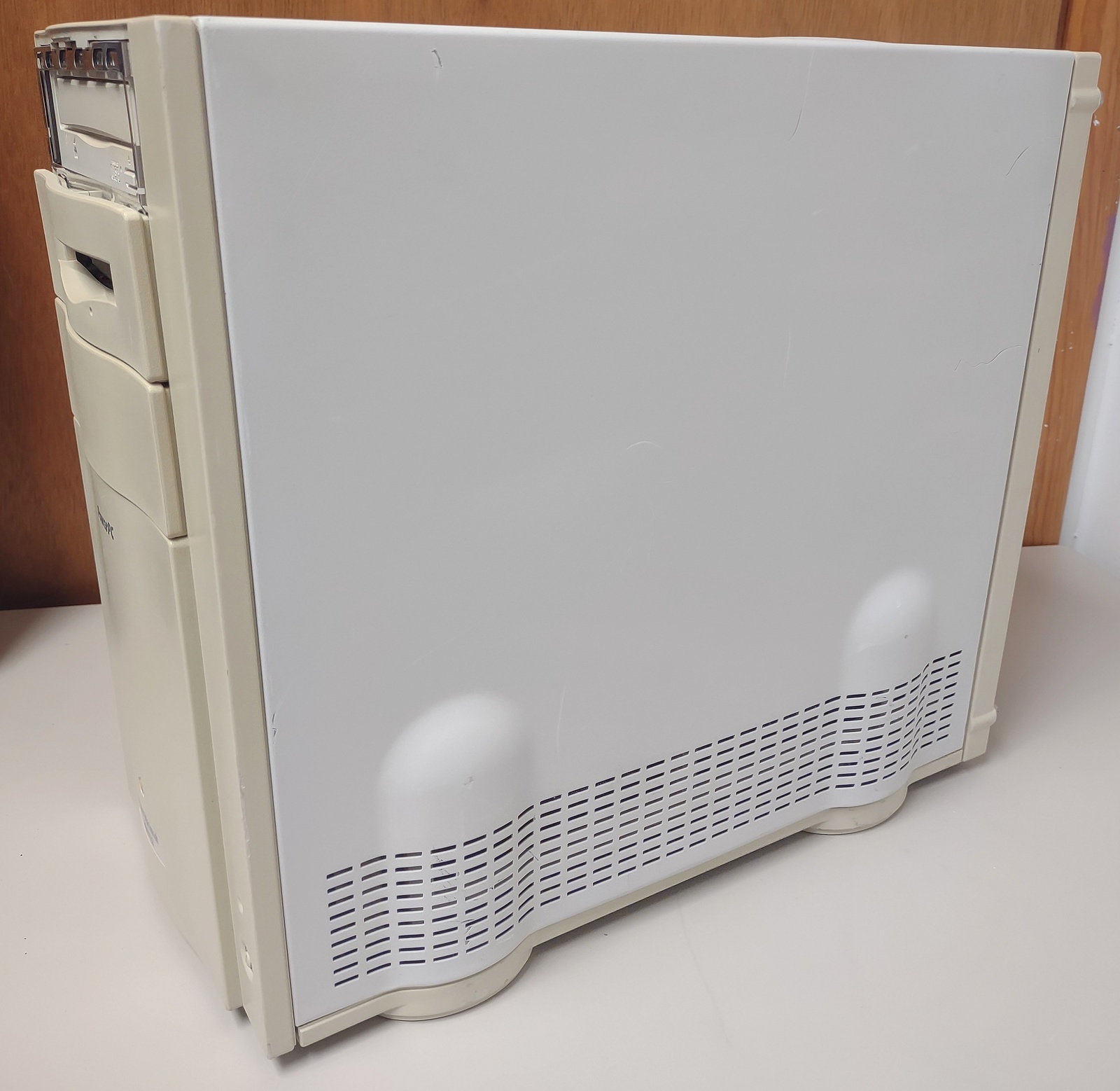 Up for sale is an old Apple Power Macintosh 8500/132 from 1996. This old desktop Mac has NO hard drive. We were able to boot it off of an old Mac OS CD ok – so the CD-ROM seems to work on, but the date and time were incorrect which means that it needs a BIOS battery. The CD-ROM drive is missing the plastic bezel which goes around it – SEE PICTURES! The plastic on the case is in generally good condition, with the exception of a piece of plastic which goes between two of the PCI slot covers – this broke when the case was removed to photograph it – so, it will either have to be replaced, possibly glued, or maybe someone can 3D print a new one? Anyway, it is pushing 30 years old and the plastic is brittle. The broken piece of plastic is included with the computer. You only get the desktop PC and the broken plastic piece – you will need to provide your own power cable, ADB keyboard and mouse as well as a monitor. We tried to run the diskette image program to make floppy diskettes of the MacOS, but it failed with an error 72 – so the floppy drive is perhaps bad? It was our experience with these old PCs that the floppy disks were pretty unreliable when they were new. . .Apple’s support site says this old PC will run all the way up to OS 9.