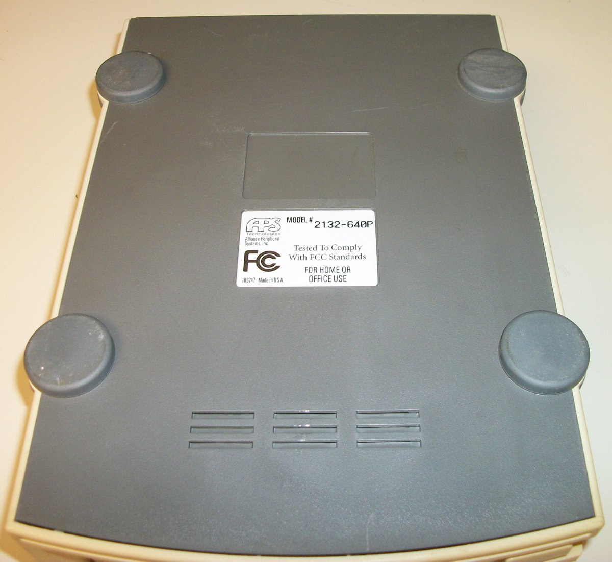 Up for sale is an APS drive, Model 2132-640P.. We powered it on and the light on the front came on and it made an initialization noise – but that’s all the testing we’re able to do.
