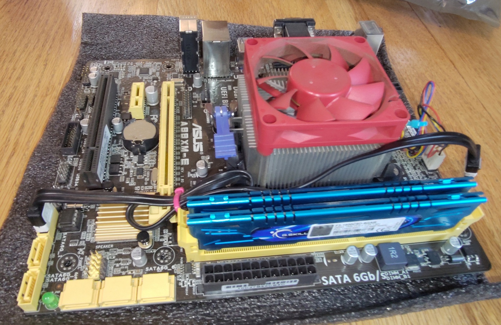 - 1 x AMD A8-7650K APU w/ Heatsink and Fan – installed on the motherboard – Radeon R7 Graphics – fan sometimes buzzes
