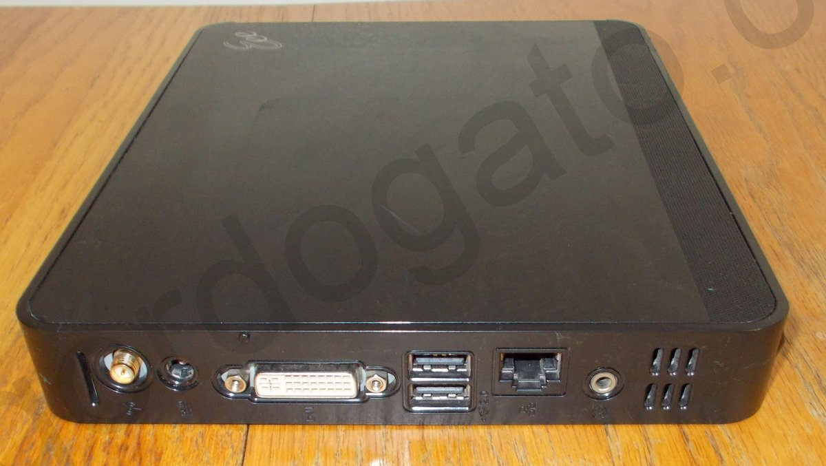 Up for sale is a used Asus EeeBox B202 PC. This PC was run for a few years, but then it got too slow, so we replaced it with a newer one. The hard drive has been removed, but the screws and bracket are included. The PC also has some scratches/scrapes on the case and is missing the door which originally covered the front. It is also missing the wireless antenna – but your replacement antenna will screw right onto the back (see pictures). We also do NOT have the stand for use as a desktop PC – it was only used mounted to the back of a monitor and the mounting bracket and screws are included (VESA compatible). Please keep these things in mind when considering your purchase.