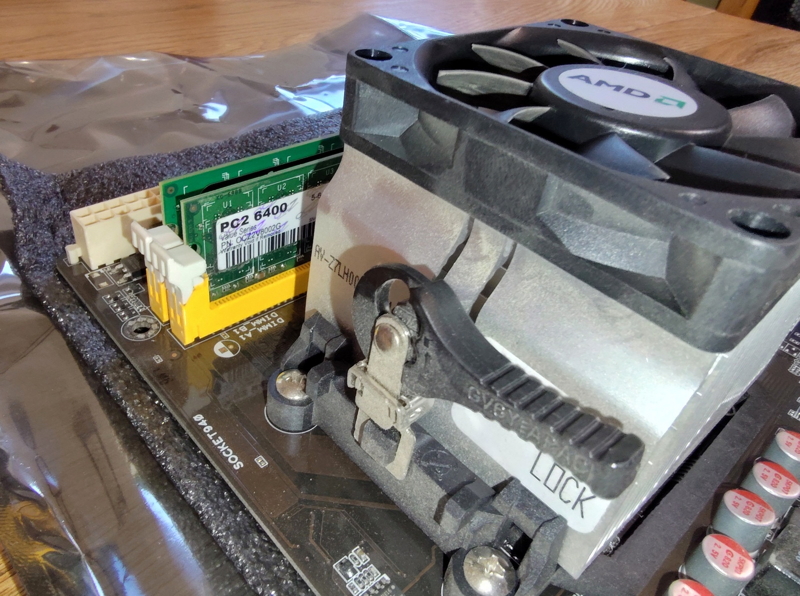 - 1 x AMD Athlon 64 X2 5200+ w/ Heatsink and Fan – installed on the motherboard – the fan is getting a bit noisy and should be replaced soon